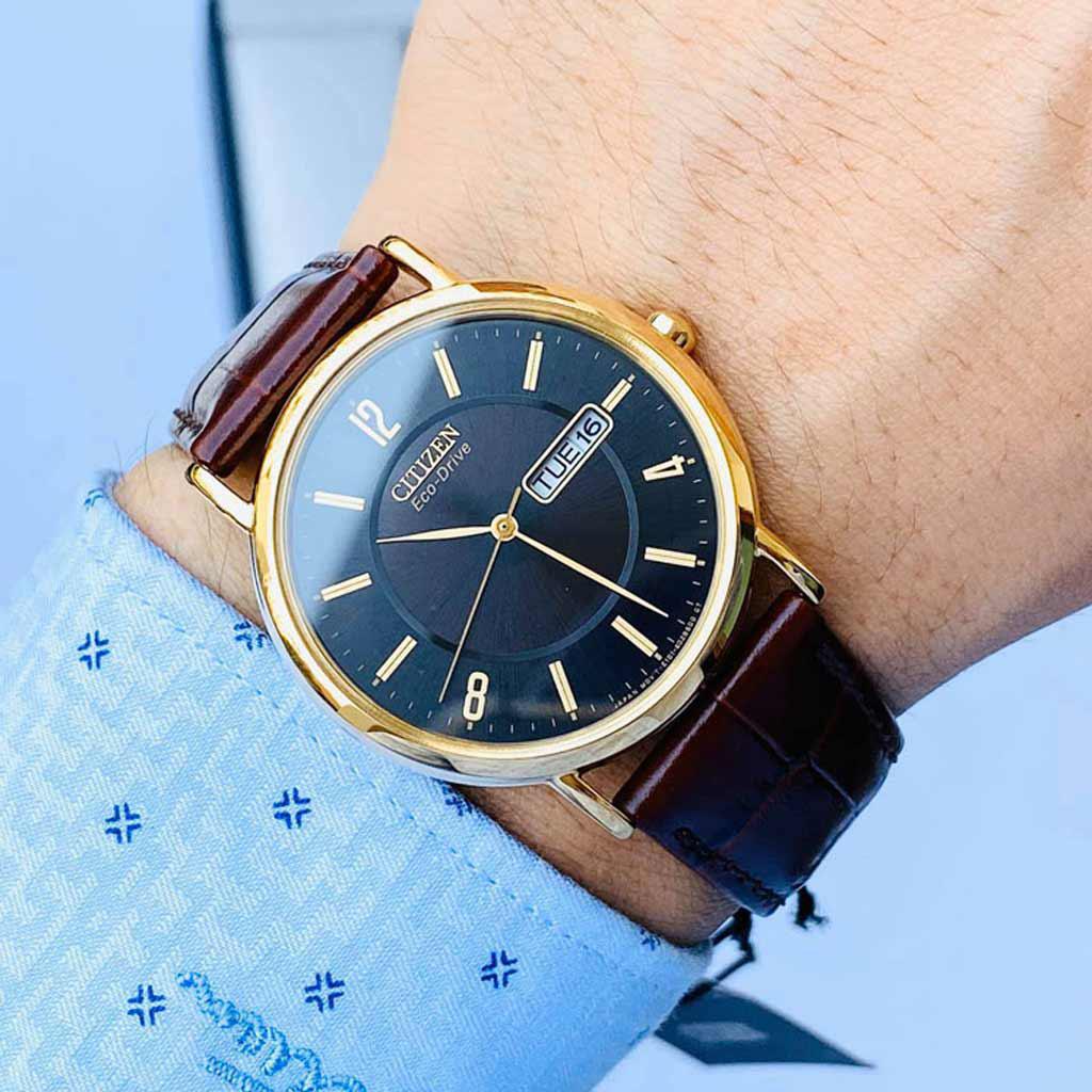 Khi nhìn vào thiết kế Citizen BM8242-08E, các anh chàng sẽ bị thu hút bởi vẻ đẹp tinh tế và lịch lãm đến từ mặt số tròn được mạ vàng cùng với thân dây da nâu thời thượng. Chiếc đồng hồ nam này cực kỳ phù hợp với những vị khách hàng có phong cách thành đạt và điềm tĩnh, không quá màu sắc nhưng vẫn đủ để toát ra sự cuốn hút riêng.