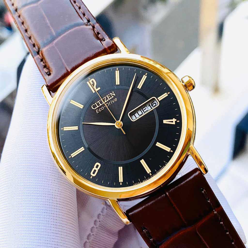 Đồng hồ Citizen BM8242-08E có viền kim loại màu vàng bo tròn tinh tế, kim chỉ và vạch số sắc nét nổi bật trên nền số màu đen mạnh mẽ, ô lịch ngày lịch thứ vị trí 3h tinh tế, dây đeo bằng chất liệu da màu nâu có vân lịch lãm. Đồng hồ Citizen BM8242-08E xách tay chính hãng là mẫu dresswatch tuy không cầu kỳ nhưng vẫn mang đến cho người sử dụng cảm giác vô cùng lịch lãm và sang trọng. Đồng hồ Citizen Eco-Drive BM8242-08E với thiết kế mặt đen làm nổi bật lên các chi tiết viền, cọc số và kim màu vàng cực sang trọng. Được trang bị chức năng lịch Thứ và Ngày ở góc 3 giờ. Ngoài ra, Citizen Eco-Drive BM8242-08E còn là mẫu đồng hồ chạy năng lượng mặt trời, tuổi thọ của pin có thể lên đến 8-10 năm. Một chiếc đồng hồ quả là rất đáng trải nghiệm của Citizen.