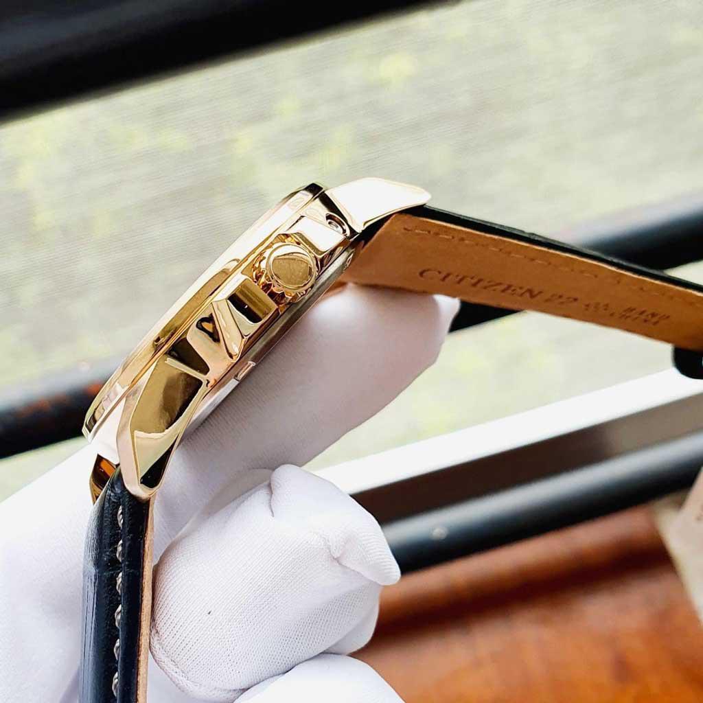 CITIZEN BX1003-08E mang vẻ đẹp mạnh đầy kiêu hãnh. Cọc số hiện đại. Dây da sang trọng thể hiện đẳng cấp quý ông. Cỗ máy Ecodrive độc quyền của Citizen cho đội chính xác cao nhất thời gian dùng pin lên đến 10 năm mà không phải thay. Tinh năng Lịch GMT tích hợp Size 41mm phù hợp với những quý ông có cổ tay trung bình đến to. Rất dễ kết hợp trang phục. CITIZEN BX1003-08E được trang bị kính cứng. Hạn chế trầy xước và chống va đập tối đa. Case sliver sang trọng và quý phái. Tone tổng thể màu mát tạo vẻ đẹp sang trọng và thanh lịch. Độ chống nước 50m giúp chủ nhân thoải mái đi mưa, rửa tay mà không sợ vào nước. Đồng hồ Citizen Eco-Drive Worldtime BX1003-08E với thiết kế quả địa cầu nền đen làm nổi bật lên các chi tiết viền, cọc số và kim màu vàng hồng (rose-gold) cực sang trọng. Kim được trang bị dạ quang cực sáng. Về các chức năng của Đồng hồ Citizen Eco-Drive Worldtime BX1003-08E: – Được trang bị chức năng lịch Ngày ở góc 3 giờ. – Điều chỉnh sang múi giờ khác (Tổng cộng 26 múi giờ) 1 cách dễ dàng cho những người hay đi nước nước ngoài – Là chiếc đồng hồ có chức năng nhận diện năm nhuận để đồng hồ luôn chạy đúng lịch Ngày (không cần chỉnh mỗi tháng) – Điều chỉnh được giờ SMT (Summertime) đối với các nước có sử dụng chức năng này Ngoài ra, Citizen Eco-Drive Worldtime BX1003-08E còn là mẫu đồng hồ chạy năng lượng mặt trời, tuổi thọ của pin có thể lên đến 8-10 năm. Một chiếc đồng hồ quả là rất đáng trải nghiệm của Citizen.
