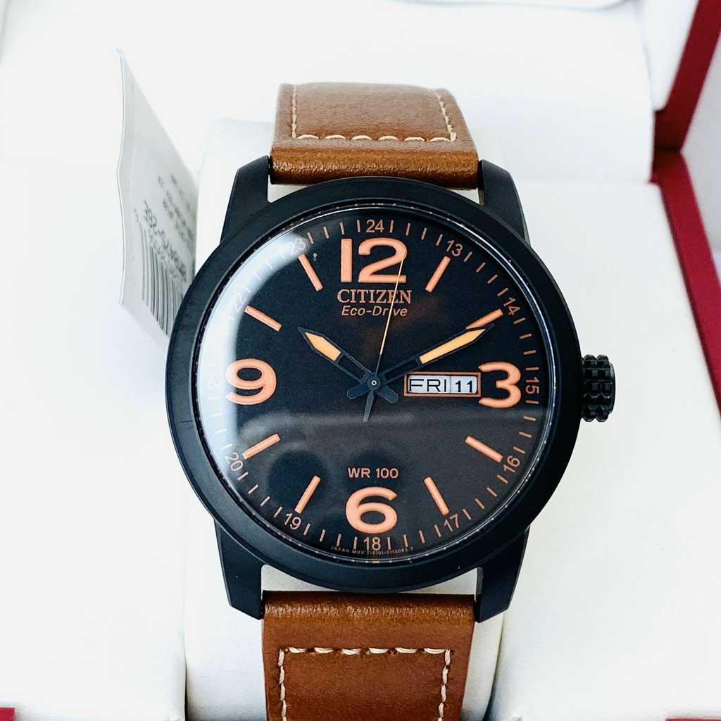 Điểm đặc biệt nổi trội trên chiếc đồng hồ Citizen BM8475-26E là khả năng hấp thụ ánh sáng bằng một lớp hợp chất phản quang (Super-LumiNova), giúp cho chiếc đồng hồ trở nên đặc biệt hơn trong bóng tối và dễ dàng quan sát thời gian hơn. Đồng hồ thời trang nam Citizen BM8475-26E, mặt đồng hồ màu đen, chữ số màu nâu cam nổi bật, 3 kim phát quang, dây da màu màu nâu, vỏ là thép không gỉ màu đen, thêm 1 lịch ngày và 1 lịch thứ