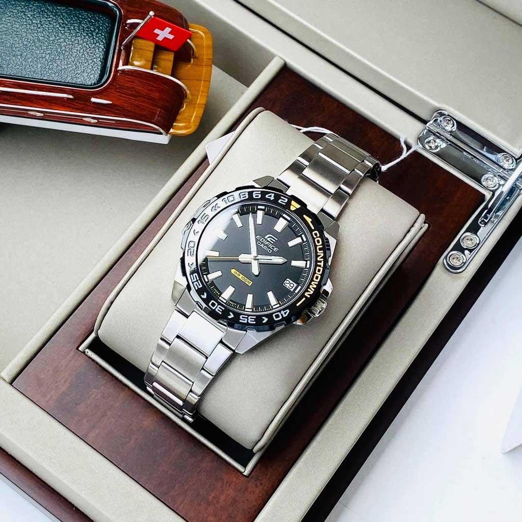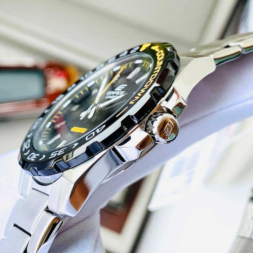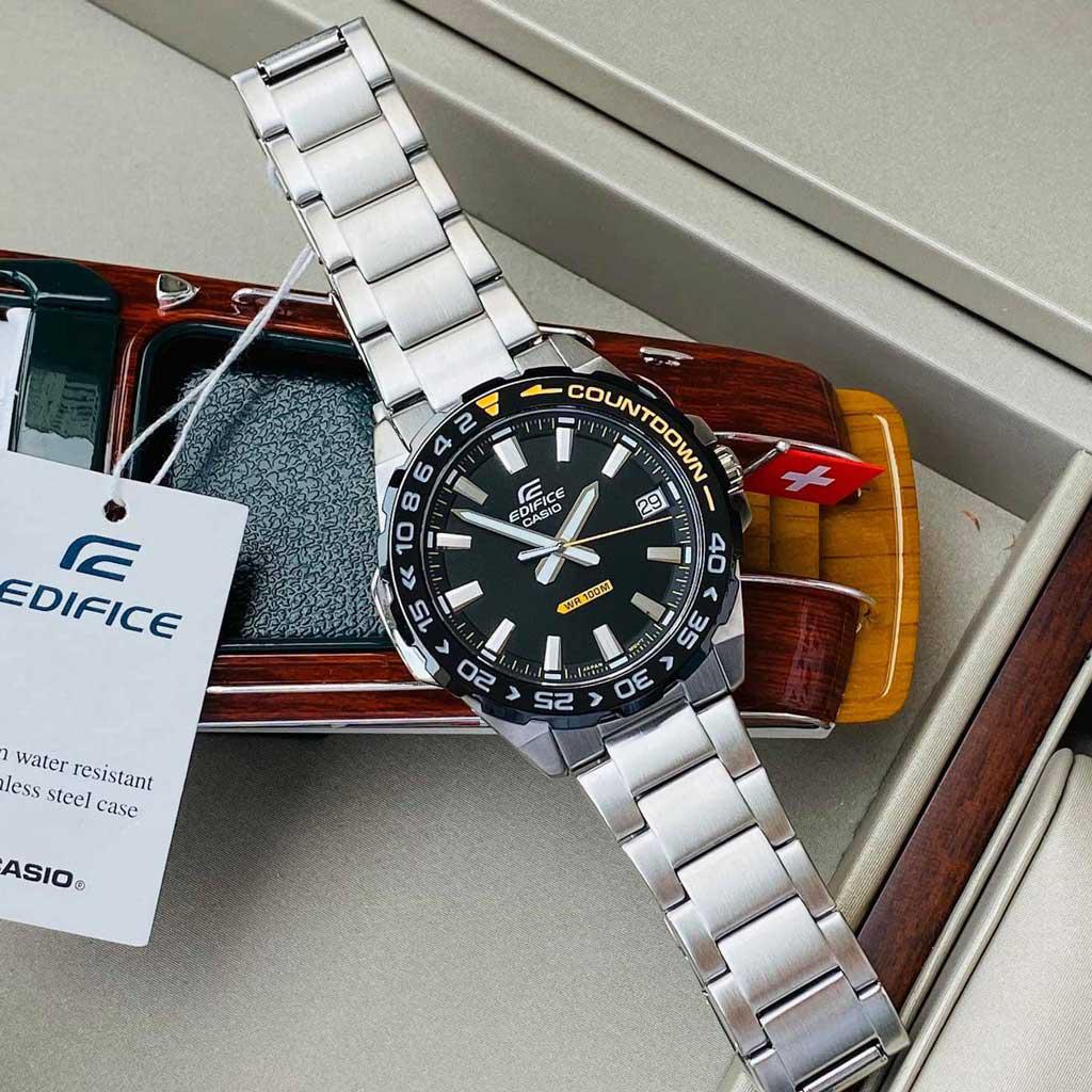 Đồng hồ Casio Edifice EFV-120DB-1AVUDF thiết kế với dòng đồng hồ dây kim loại cao cấp lạ mắt với những màu sắc trong nền mặt đồng hồ càng làm tăng lên sự độc đáo và nổi bật của mẫu thiết kế này. Hơn nữa với tính năng chống nước lên tới 100m giúp bạn thoải mái tự tin tham gia các hoạt động thường nhật của mình. Đồng hồ Casio Edifice có phần gờ mạ ion màu đen cá tính, công nghệ mạ tiên tiến nhất thế giới đảm bảo độ bền chắc của sản phẩm, phần gờ chống đảo chiều có thể xoay hẹn giờ cực chất mang đến phong cách đậm chất thể thao, Casio Edifice chưa bao giờ khiến bạn thất vọng về các sản phẩm.