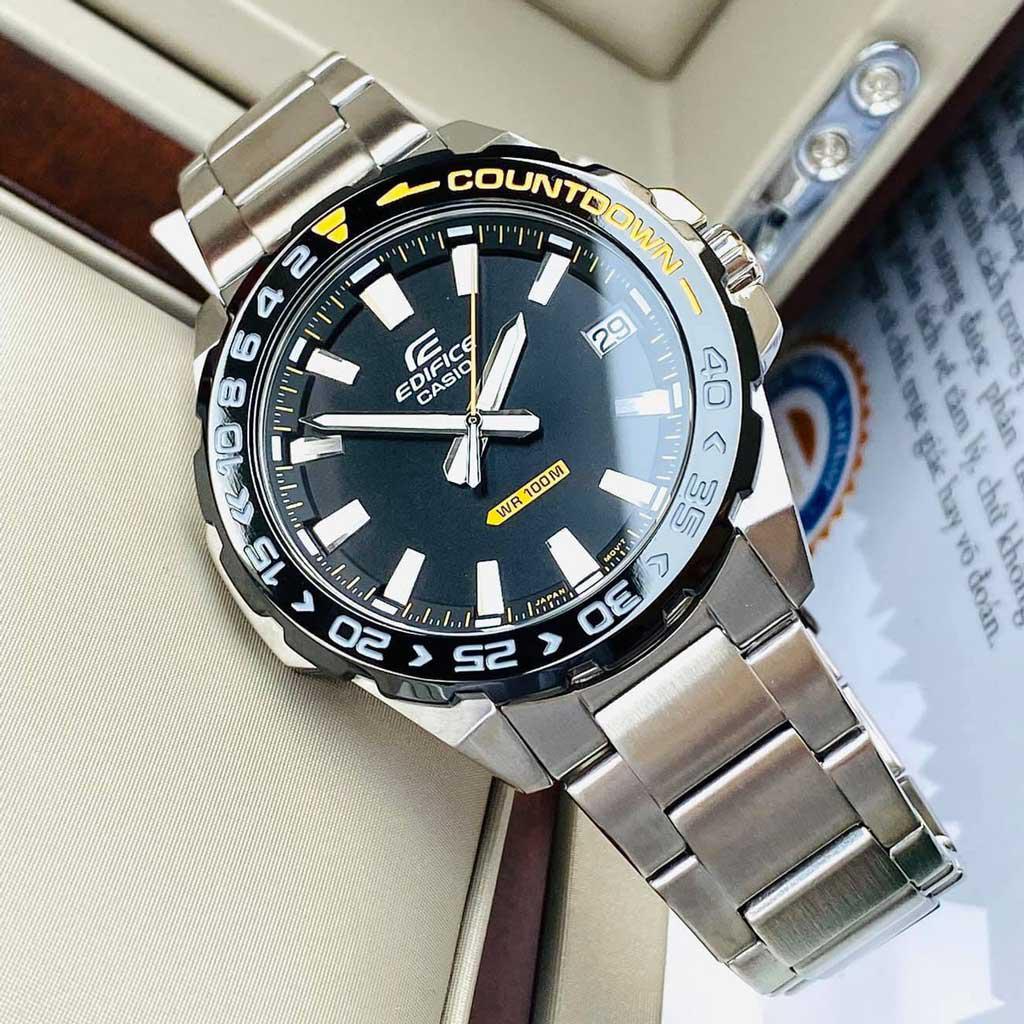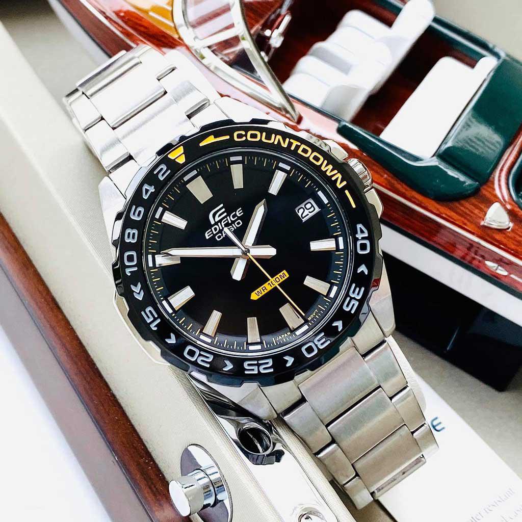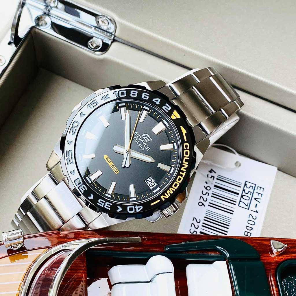 Đồng Hồ Casio Edifice EFV-120DB-1AVUDF dây kim loại cao cấp, kiểu dáng mặt cá tính, viền mặt hình răng cưa khỏe khoắn, kết hợp màu đen và có những điểm vàng trẻ trung, đồng hồ 3 kim theo kiểu dáng đơn giản.