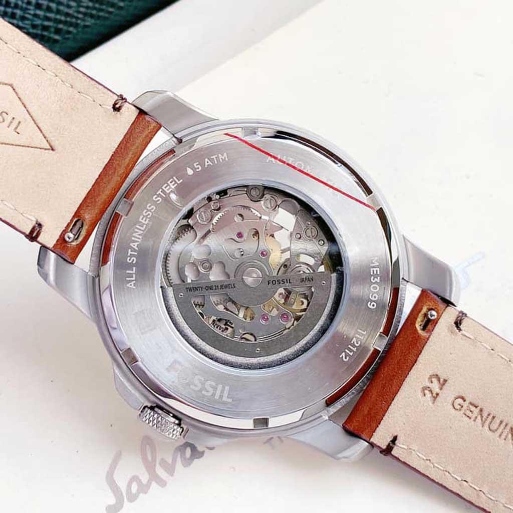 ◆– – Nếu nói đến thương hiệu đồng hồ dành cho nam giới thì Fossil chắc chắn là cái tên không thể bỏ lỡ. Nếu nói đến mẫu đồng hồ cơ nào đang làm mưa làm gió trên thị trường Việt Nam thì Fossil ME3099 tiếp tục lại là một đại diện khi hội tụ đầy đủ các thông số kỹ thuật, kiểu dáng thời trang cũng như giá thành. ◆– – Song song đó là thiết kế mặt số to, tròn với đường kính lên đến 44 mm giúp nam giới hoàn toàn tự tin khi diện đồng hồ Fossil ME3099 cùng trang phục công sở. Tuy nhiên cũng lưu ý với người dùng là nên sử dụng thường xuyên hơn để chiếc đồng hồ của bạn trữ đủ cót và luôn tràn đầy năng lượng cho ngày dài vận động.