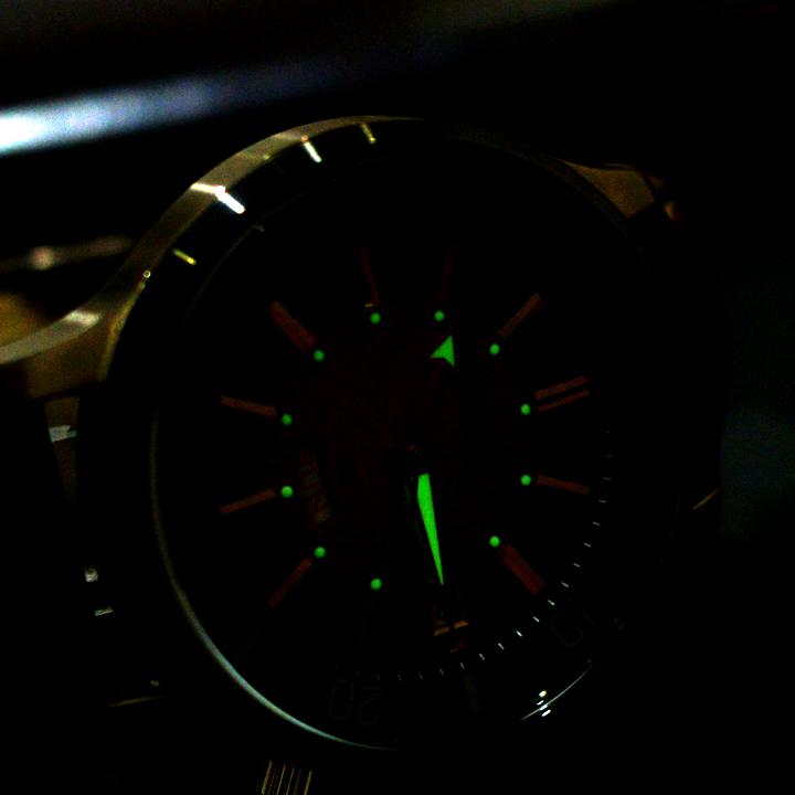Orient King Diver RA-AA0D04G0HB được ca tụng như một vị vua của đồng hồ lặn Orient được tái sinh từ nguyên bản ra mắt 1965, đó là giai đoạn phát triển ban đầu của Orient. Mẫu đồng hồ King Diver nguyên bản đã tạo nên một cơn sốt tại thời điểm đó với thiết kế kích thước lớn vốn cực kỳ hiếm thấy trong kỷ nguyên vốn thuộc về những mẫu đồng hồ size nhỏ. Nhà sản xuất Nhật Bản gần như giữ lại toàn bộ thiết kế của hơn 60 năm trước với đầy đủ đặc điểm của một mẫu đồng hồ lặn. Đó là kim giờ dạng Arrow, kim phút dạng Dauphine, bộ cọc số đa diện đi kèm với các chấm dạ quang nhỏ. Đây là một thiết kế rất hay khi không chỉ đem lại khả năng xem giờ trong bóng tối mà còn sở hữu bộ cọc số bắt sáng cực tốt tạo nên hiệu ứng tuyệt vời dưới nắng. Ở phần rìa sẽ là thang đo thời gian dạng xoay, một đặc trưng khác của Diver. Đây là kiểu Inner Ring khi nó nằm hẳn bên dưới lớp kính và được điều chỉnh bởi nút phụ ở cạnh bên, thay vì được thiết kế dưới dạng Bezel Outer Ring như các Diver thông dụng vẫn rất quen thuộc như Orient Mako. Trải nghiệm xoay Ring kiểu này là vô cùng thú vị, nhẹ nhàng và chính xác.