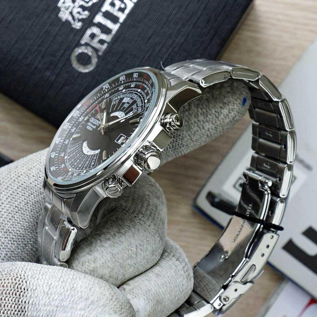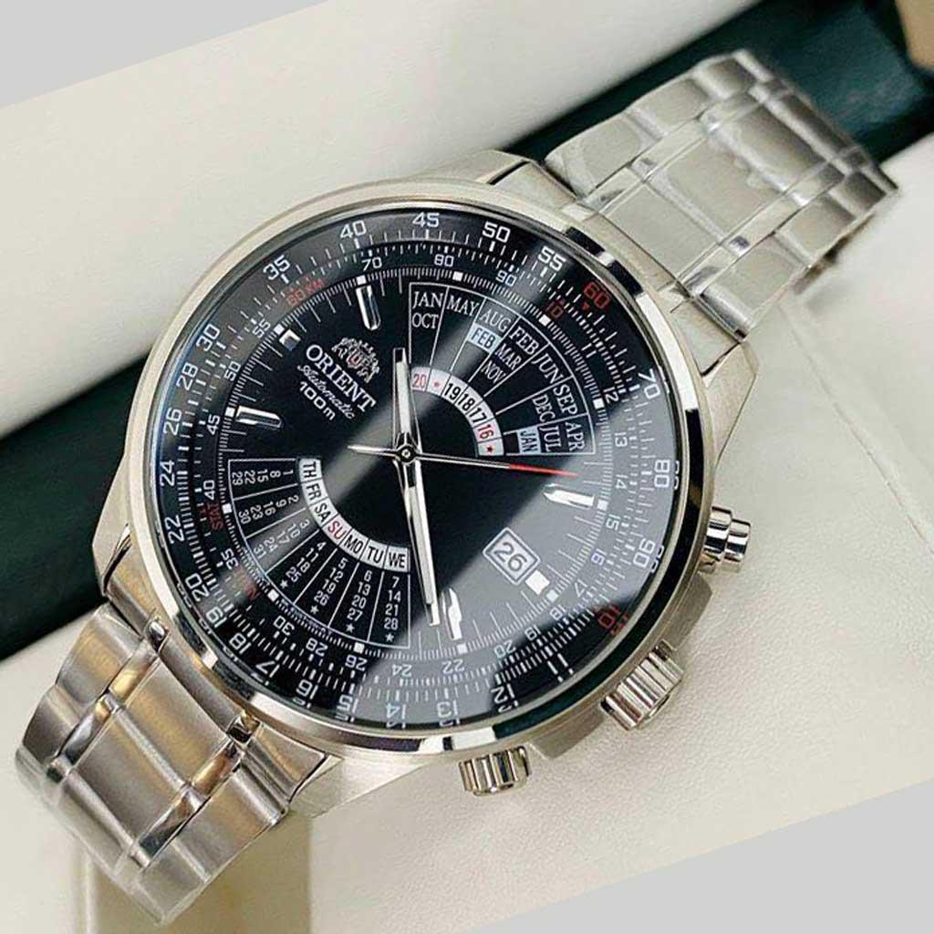 Thuộc dòng đồng hồ vạn niên của hãng. Trái ngược với các thiết kế Orient mang đậm phong cách cổ điển với thiết kế mặt số đơn giản, mẫu Orient lịch vạn niên mang cả một bộ lịch với khối lượng thông tin cực lớn vận hành trên mặt đồng hồ. Dù phải đo lường nhiều mức thời gian cùng một lúc, đồng hồ với cỗ máy In-House Nhật Bản vẫn thể hiện khả năng vận hành chính xác một cách đáng nể.