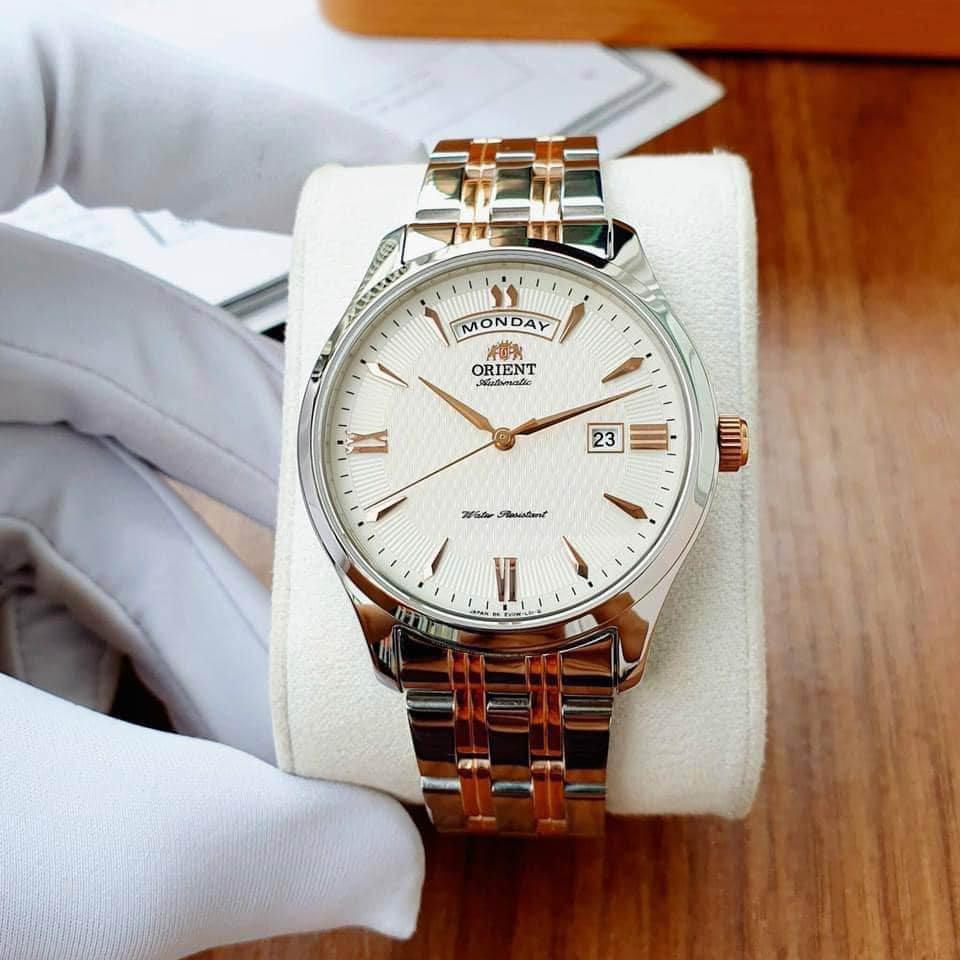Orient Automatic SEV0W001WH có thiết kế lịch lãm cùng màu demi vàng hồng sang trọng. Lịch cong ở góc 12h cùng bộ kim sắc nhọn kết hợp với mặt kính sapphire tạo điểm nhấn cho mẫu đồng hồ này. Orient Automatic SEV0W001WH sở hữu đường kính mặt số 40mm, độ dày 11mm, dây đeo vừa phải phù hợp với đa phần cổ tay nam giới Việt. Vỏ đồng hồ được làm từ thép không gỉ mạ vàng hồng PVD cao cấp, mặt kính sapphire có độ chống lực, chống trầy xước cao. Độ chịu nước 5ATM phù hợp với mọi hoạt động hàng ngày như: đi mưa, rửa tay... Với chiếc đồng hồ vừa thời trang, sang trọng này sẽ giúp phái mạnh tự tin khẳng định mình khi tiếp xúc, gặp gỡ mọi người xung quanh. Bạn có thể diện chiếc đồng hồ trong nhiều dịp khác nhau khi đi chơi, gặp đối tác khách hàng.