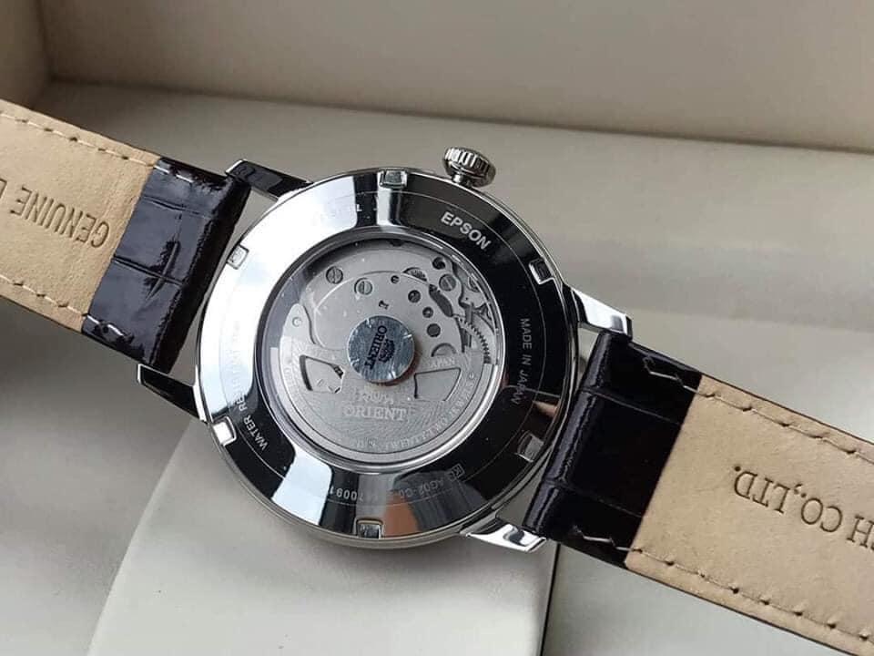 Mặt sau của mẫu Orient FAG02005W0 được làm bằng kính trong suốt . Thiết kế này giúp phô diễn khung cảnh hoạt động đầy ấn tượng bên trong của mẫu đồng hồ này . Ngoài ra Orient FAG02005W0 còn có tiêu chuẩn chống nước 5 ATM . Tiêu chuẩn này đủ giúp đồng hồ vẫn an toàn khi tiếp xức với nước trong các hoạt động bình thường hằng ngày.