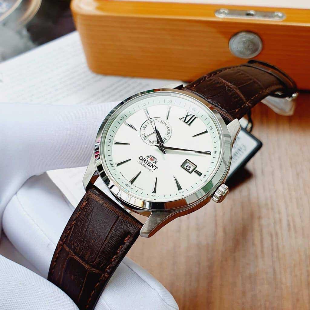 ❐ Ngoài chất lượng thì khi quyết định mua một sản phẩm nào đó khách hàng cũng rất quan tâm đến những tính năng, tiện ích đi kèm với đồng hồ: ☛ Lịch ngày: Cửa sổ lịch ngày thì vẫn nằm ở góc 3h quen thuộc người đeo dễ dàng quan sát. ☛ Lịch thứ: Cửa sổ lịch thứ ở mẫu đồng hồ Orient dây da này không còn gộp chung với lịch ngày nửa mà được tách riêng ở góc 10h, đây cũng là một tính năng hỗ trợ hữu ích cho người dùng trong quá trình sử dụng. ☛ Khả năng kháng nước: Với chỉ số 5ATM cho phép sử dụng thường ngày như việc rửa tay, đi mưa lớn, tắm bồn, tắm vòi sen sẽ dễ dàng với những hoạt động của nam giới. ❐ Tựa chất hơi thở của một quý ông trưởng thành đồng hồ Orient Automatic mang tới một vẻ ngoài thiết kế lịch lãm, sang trọng cùng tạo hình dây đeo da vân nâu cao cấp rất đặc biệt và lôi cuốn. Mặt số màu trắng bạc đơn giản, có chiều sâu với những họa tiết cọc số và bộ kim chính thanh mảnh như thức tỉnh mọi cảm nhận và đam mê của những người xem khi nhìn thấy mẫu đồng hồ này trên tay.