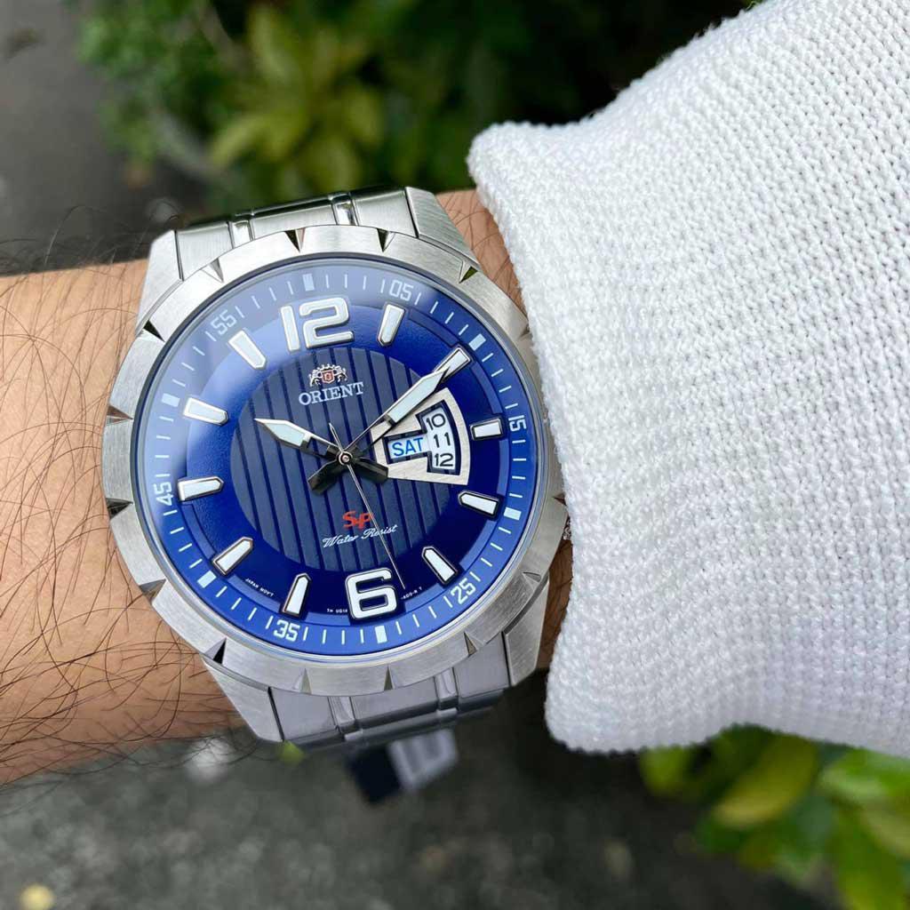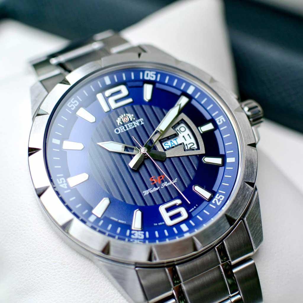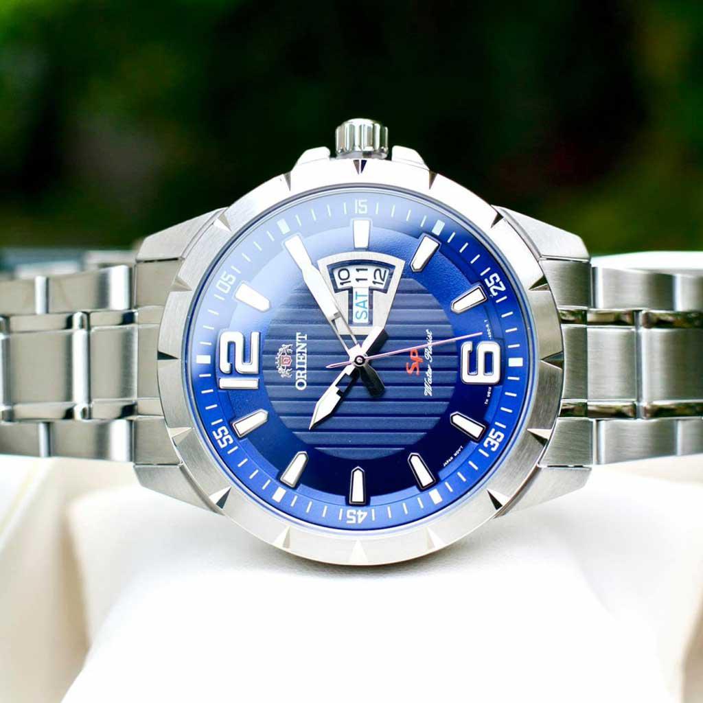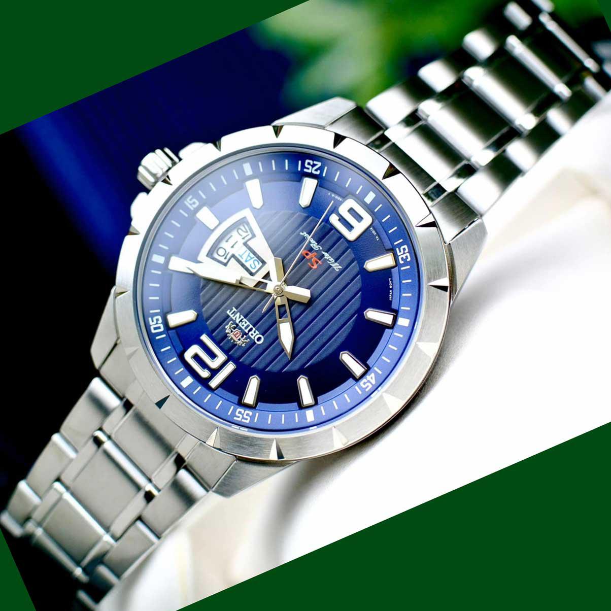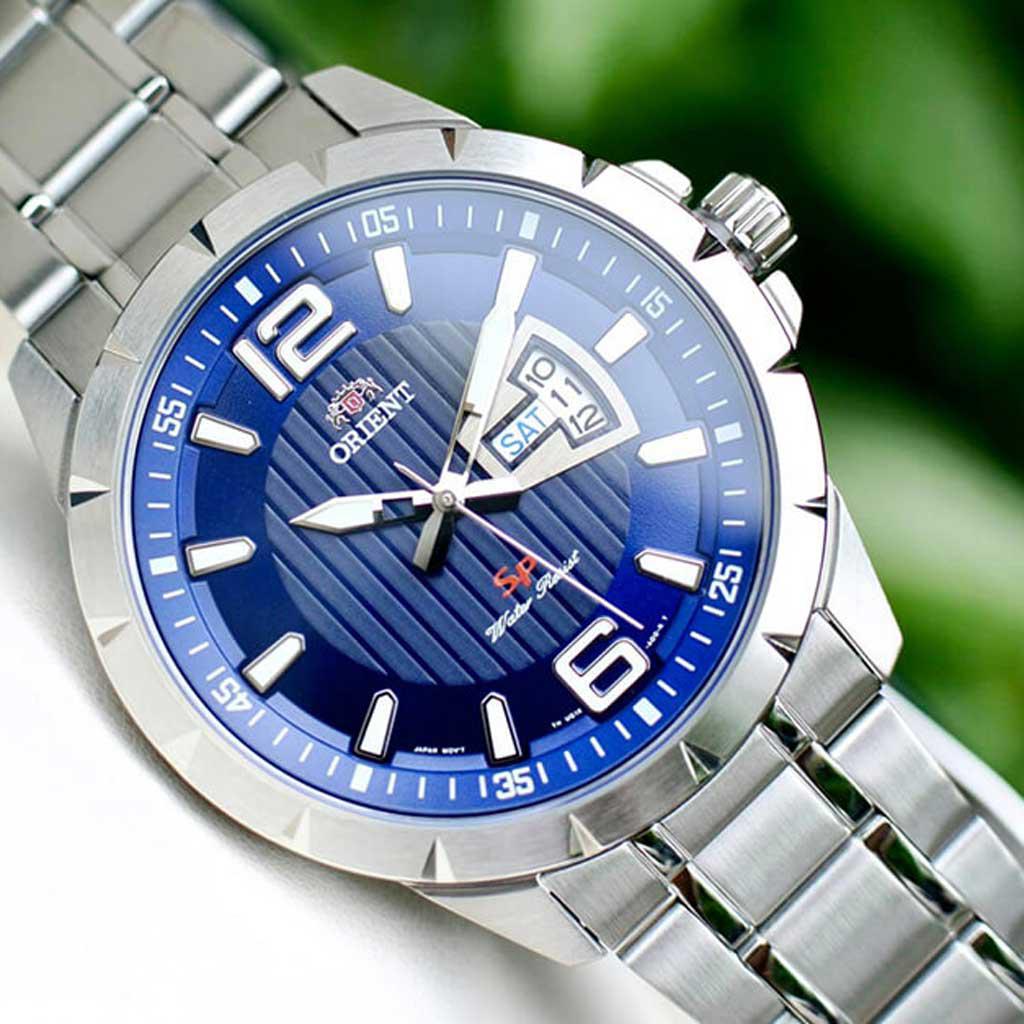 Đồng hồ Orient FUG1X004D9 có mặt số phong cách thể thao mạnh mẽ, kim chỉ được làm thanh mãnh và vạch số được phủ màu trắng phản quang nổi bật trên nền số màu xanh sang trọng, dây đeo kim loại bạc nam tính. Một thiết kế đồng hồ thể thao luôn là thứ không thể thiếu đối với nam giới, vì đây là bí quyết giúp đấng mày râu tôn lên sự bản lĩnh và mạnh mẽ. Đơn cử chiếc đồng hồ Orient FUG1X004D9 vừa cá tính nhưng vẫn giữ nét lịch lãm, không hầm hố. Phiên bản này sở hữu máy Quartz có độ chính xác cao, cùng nhiều tính năng nhưng giá chưa đến 3 triệu.