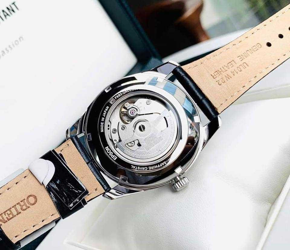- Bộ máy automatic F6B2 với 22 chân kính và 21.600vph, hỗ trợ cót tay và dừng kim giây - Size 41.5mm thích hợp với anh em có cổ tay 16cm trở lên - Kính sapphire chống xước hoàn hảo - Mặt số màu trắng trẻ trung - Chức năng Sun & Moon độc đáo, lịch ngày và thứ - Bộ vỏ thiết kế vát tạo cảm giác mạnh mẽ, dây da đen kết hợp với khoá xiên truyền thống - Chống nước 50m