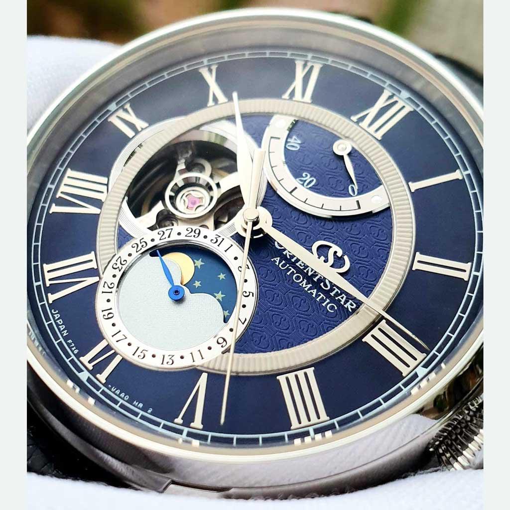 Orient Star Moonphase Blue - RE-AM0002L00B - Một trong những mẫu đhồ đỉnh nhất của Ngôi sao phương Đông - Orient Star sở hữu 1 diện mạo vạn người mê, với thiết kế cổ điển tinh tế được chăm chút từng chi tiết nhỏ nhất.