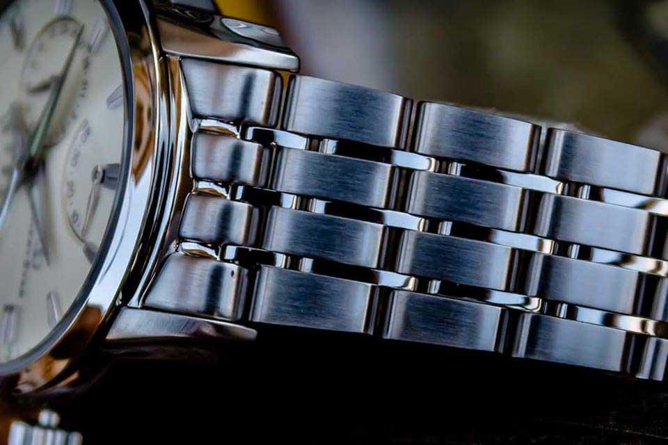 Tại sao tôi lại ví Orient Star SDE00002W0 như là một viên đạn bạc? Đó chính là ở ngoại hình của chiếc đồng hồ này. Toàn bộ chiếc đồng hồ là một màu bạc sáng bóng với chất liệu từ dây đến vỏ máy là thép không gỉ 316L. Dây đồng hồ ở dạng 7 chỉ dây với 3 chỉ được đánh bóng sáng tạo thành được sọc dọc theo suốt chiều dây đồng hồ. Phần cạnh của đồng hồ được mài xước. Đây là thiết kế thể hiện sâu sắc sự tinh tế của các nghệ nhân Nhật Bản. Phần được mài xước chính là phần mà có khả năng va chạm cao với các vật dụng khác khi bạn đeo trên tay. Việc mài xước như vậy giúp đồng hồ chống xước trong quá trình va đập. Đồng hồ nam Orient cơ SDE00002W0 có vỏ máy được làm từ thép không gỉ kết hợp với dây đeo kim loại khỏe khoắn, mang đến vẻ nam tính cho phái mạnh. Mặt đồng hồ tròn, nền trắng, các vân trên mặt khá tính tế, kim báo xăng tại vị trí 12h giúp bạn dễ dàng biết được mức dự trữ cót hiện tại. Với thiết kế kiểu ” Retrograde” thì kim chỉ thứ sẽ bật ngược lại khi hết chu kỳ lịch.