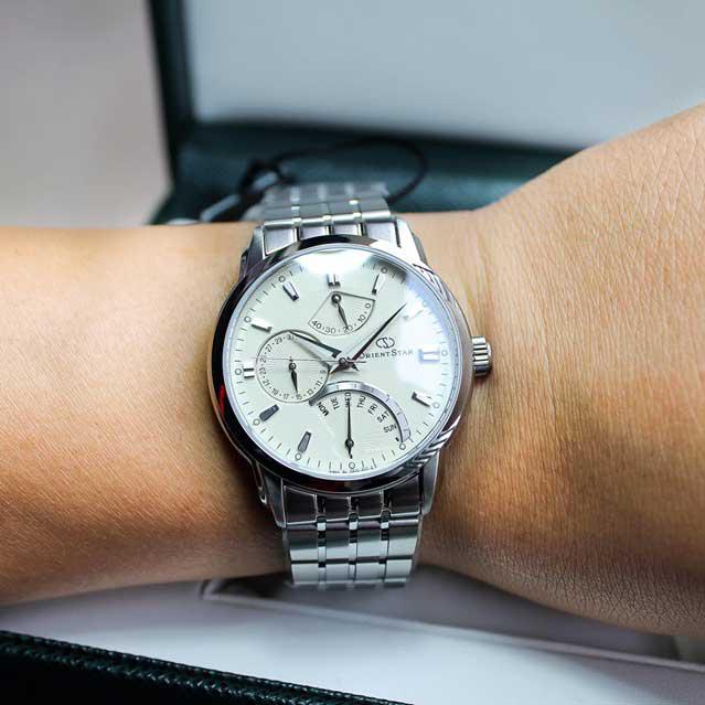 1. Orient Star SDE00002W0 – thiết kế màu bạc trẻ trung mà sang trọng