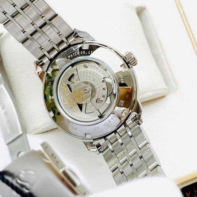 Với đường kính mặt 39,5mm Orient Star SDE00002W0 rất phù hợp với những nam giới nhỏ người, chu vi tay tầm 15, 16cm là hoàn toàn có thể sử dụng chiếc đồng hồ này như là phụ kiện hàng ngày. Thêm vào đó độ dày chỉ là 12mm cũng khiến người đeo cảm giác nhẹ nhàng và thoải mái, không vướng víu khi hoạt động. Một tính năng nữa mà các bạn tưởng chừng như không ảnh hưởng gì những vô cùng quan trọng với giới đồng hồ. Đó chính là việc kim giây của Orient SDE00002W0 sẽ dừng lại khi được điều chỉnh giờ. Lý do tại sao tính năng này lại quan trọng? Vì điều đó thể hiện độ chính xác của đồng hồ khi chỉ giờ. Việc kim giây dừng lại thể hiện Orient Star SDE00002W0 có độ chỉ giờ chính xác cao. Mặt đáy của Orient Star SDE00002W0 là trong suốt khiến thỏa mãn sự tò mò của những người hâm mộ đồng hồ cơ. Không còn gì tuyệt vời hơn là được ngắm nhìn những chi tiết nhỏ vận hành bên trọng một cỗ máy ăn khớp với nhau như vậy.