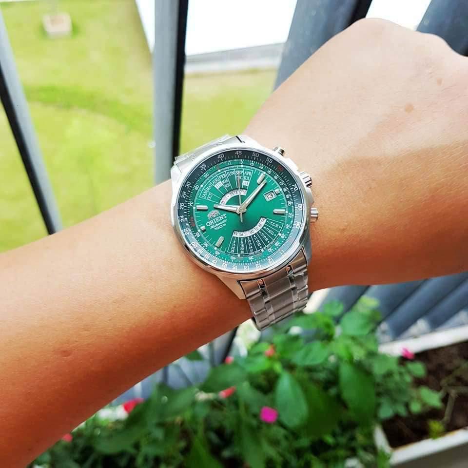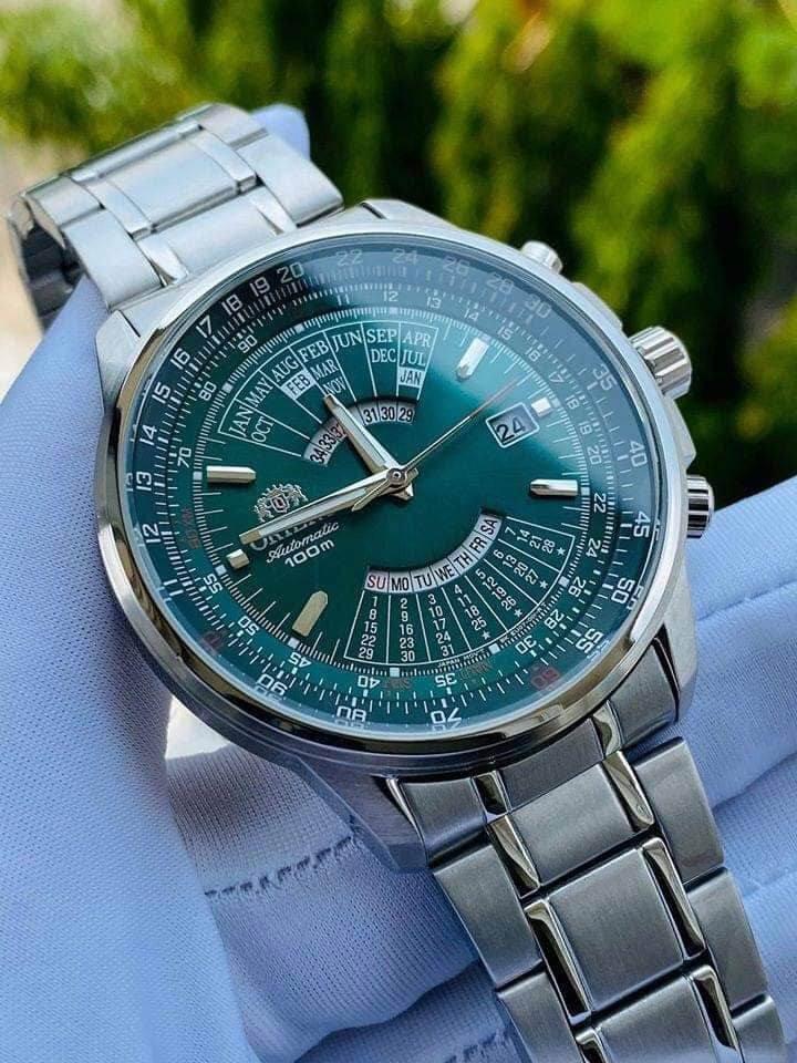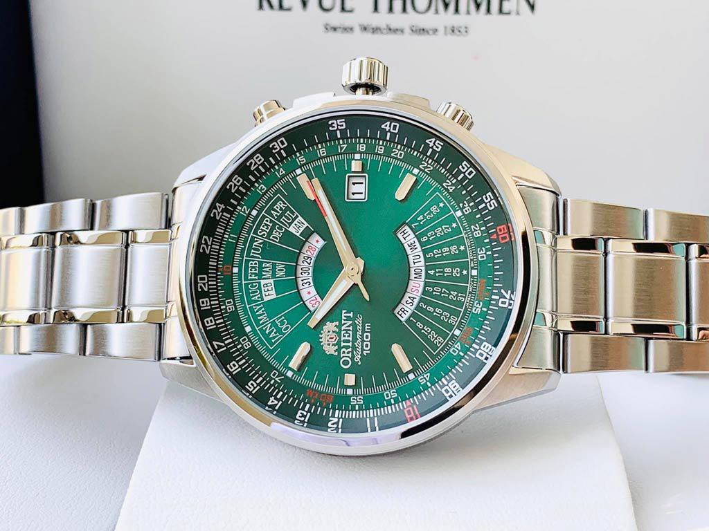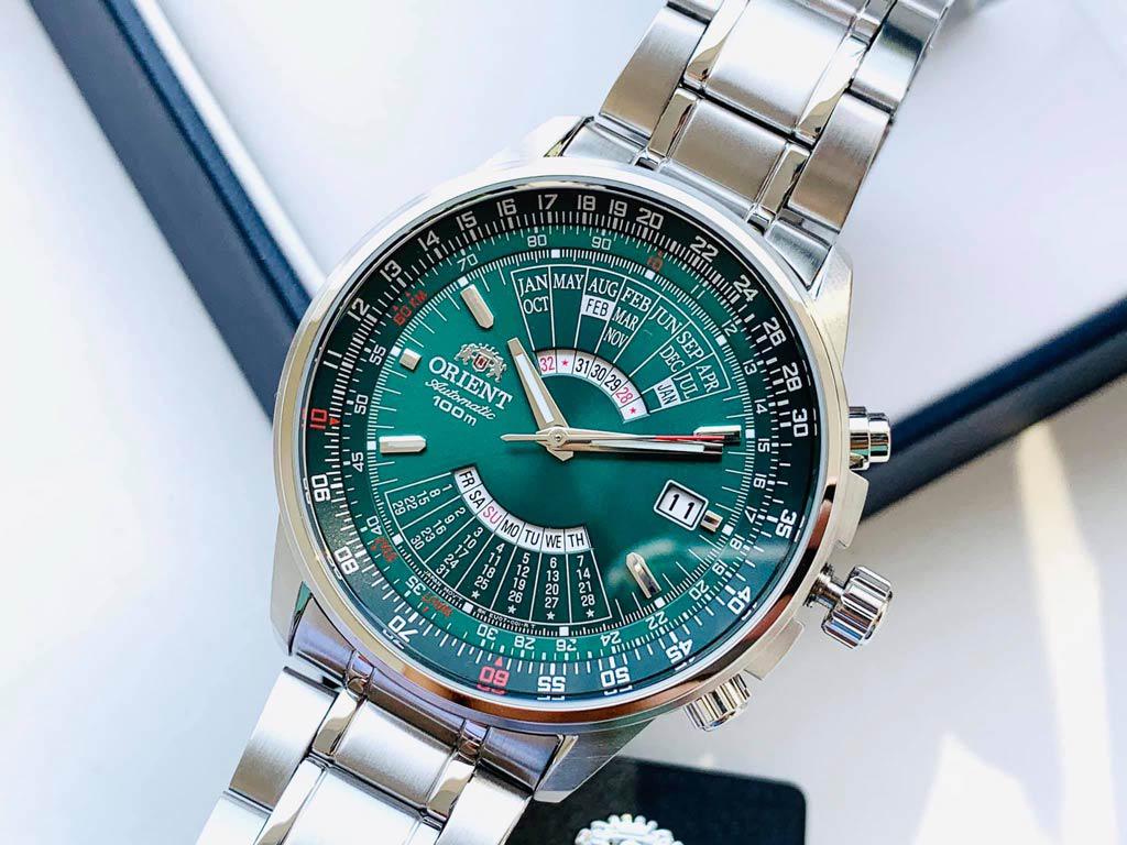 Đồng hồ Nam Orient – Lịch vạn niên với thiết kế vô cùng tinh tế và bắt mắt, tone màu xanh mặt số chủ đạo tạo nên sự trẻ trung đầy lịch lãm