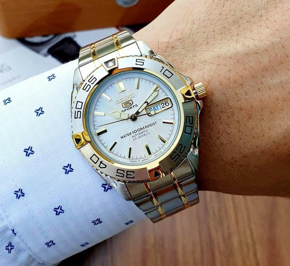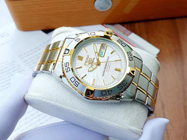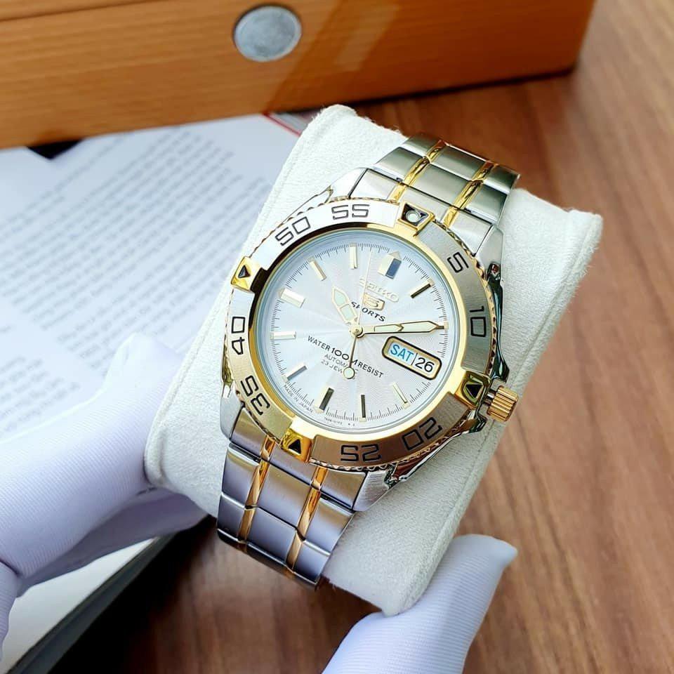 - SEIKO AUTOMATIC SNZB24J1 Mang phong cách nam tính, mạnh mẽ, với những chi tiết mạ vàng tăng phần sang trọng tinh tế.