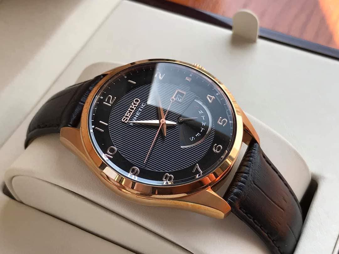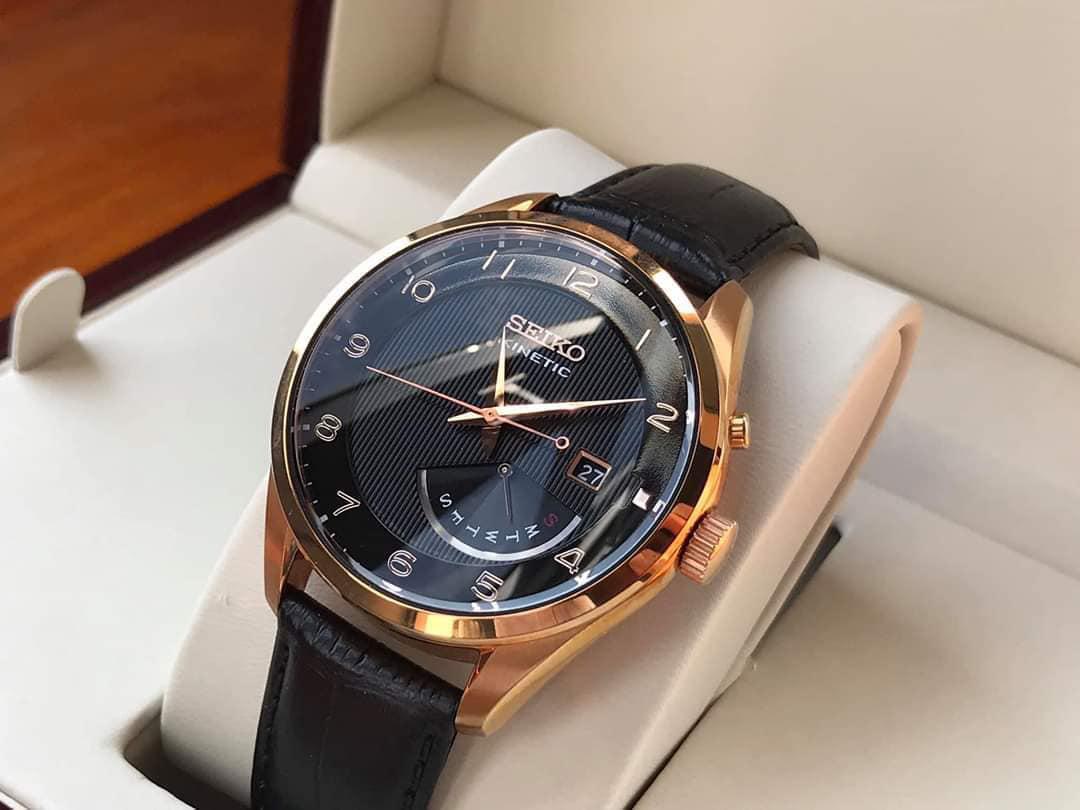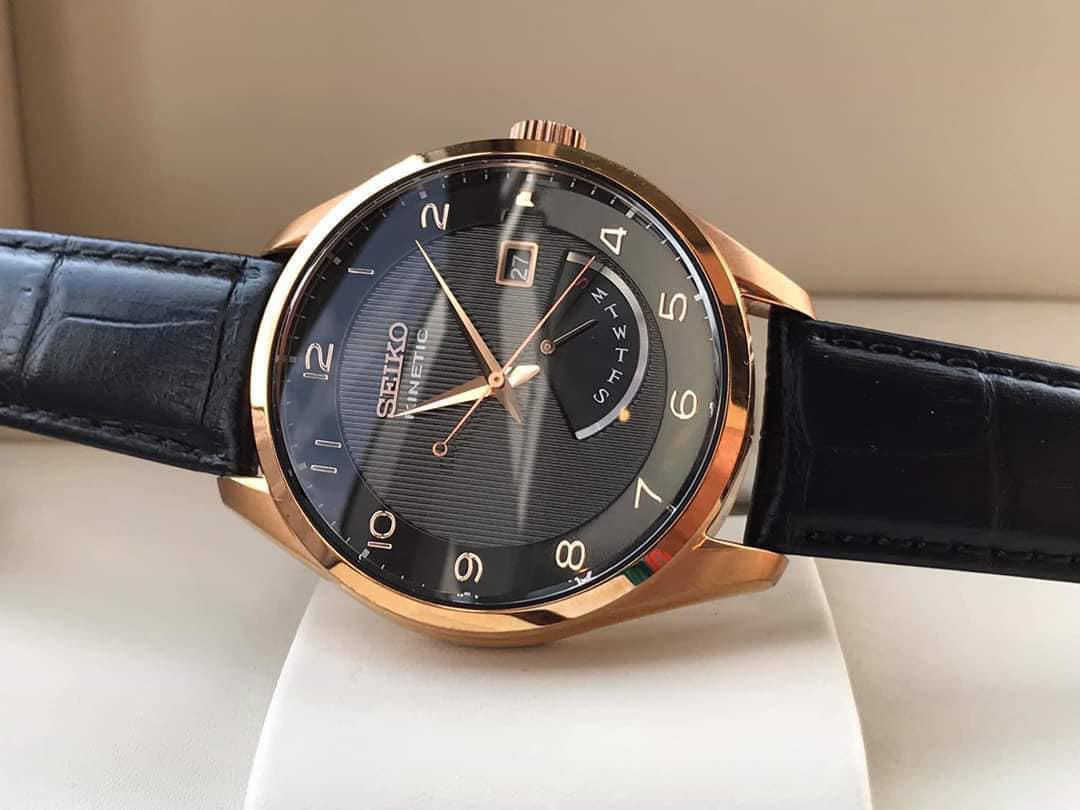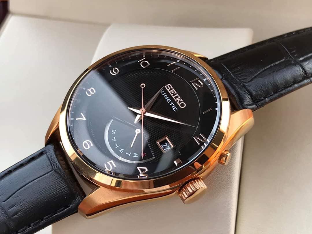 SEIKO KINETIC SRN054P1 – Sang Trọng Lịch Lãm – Seiko SRN054P1 sở hữu thiết kế độc đáo được thể hiện bởi sự kết hợp của dây da màu đen sang trọng và mặt số 4 kim độc đáo, tinh tế. – Chất liệu thép không gỉ mạ rose gold và mặt kính cứng giúp cho chiếc Seiko SRN054P1 luôn luôn sáng đẹp, ngoài ra chiếc đồng hồ này còn được tích hợp một lịch thứ – lịch ngày tiện ích.