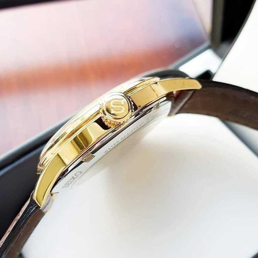 Mẫu Seiko SRPB44J1 với thiết kế bộ máy cơ mang đến trải nghiệm đầy nam tính, các chi tiết vỏ máy bằng thép không gỉ cùng với núm vặn đều được phủ vàng nổi bật khoác lên vẻ sang trọng đầy tinh tế với vẻ ngoài giản dị.