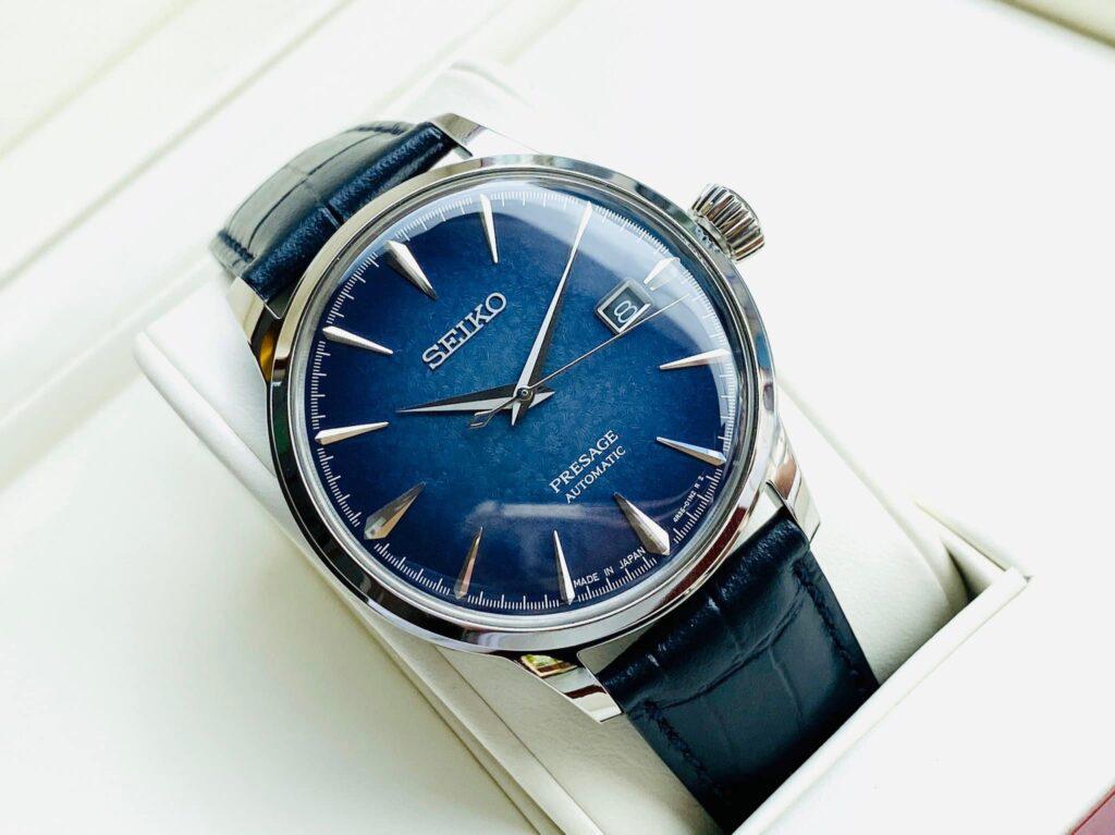 Made in Japan. Phiên bản giới hạn 3.500 chiếc trên toàn thế giới với mặt dial mẫu Cocktail này vẫn là Vân Hoa Anh Đào cực kì đẹp mắt. Màu Xanh Starlight LIMITED quá đẳng cấp!