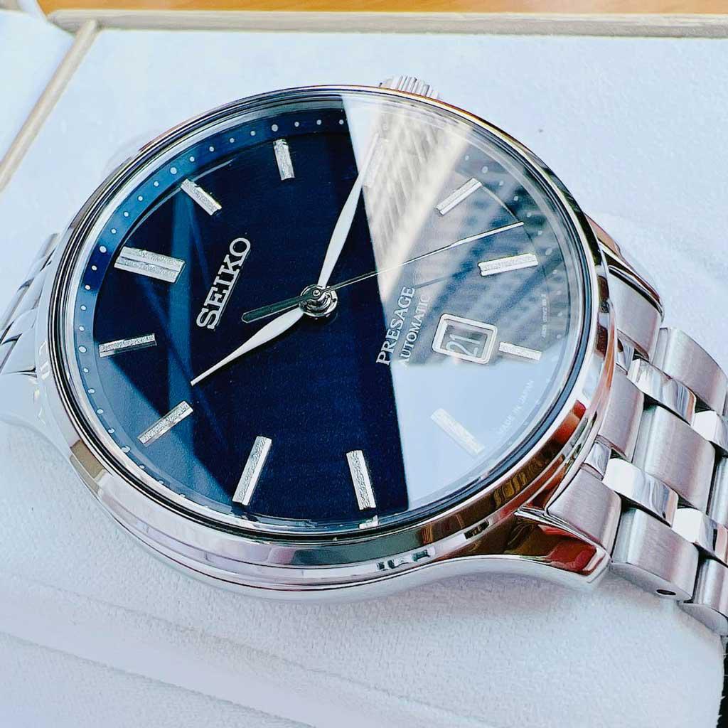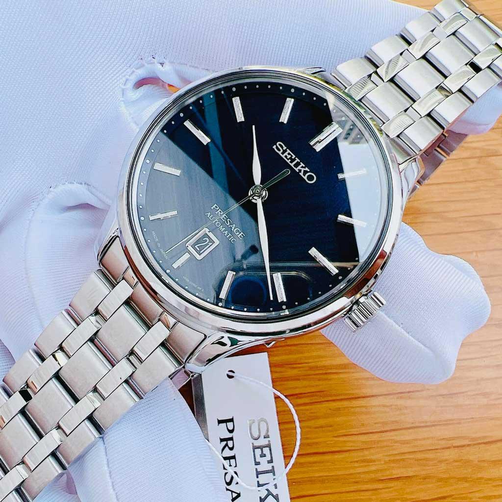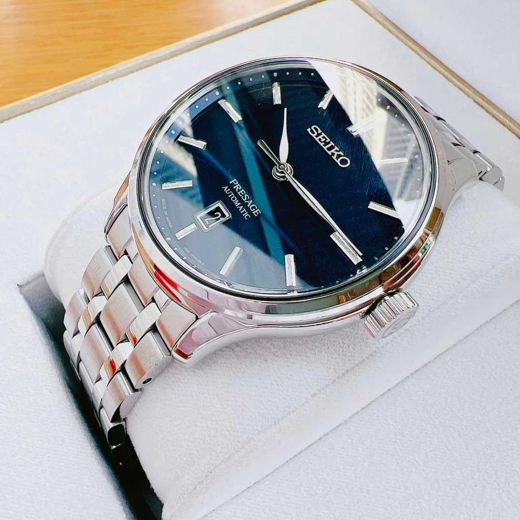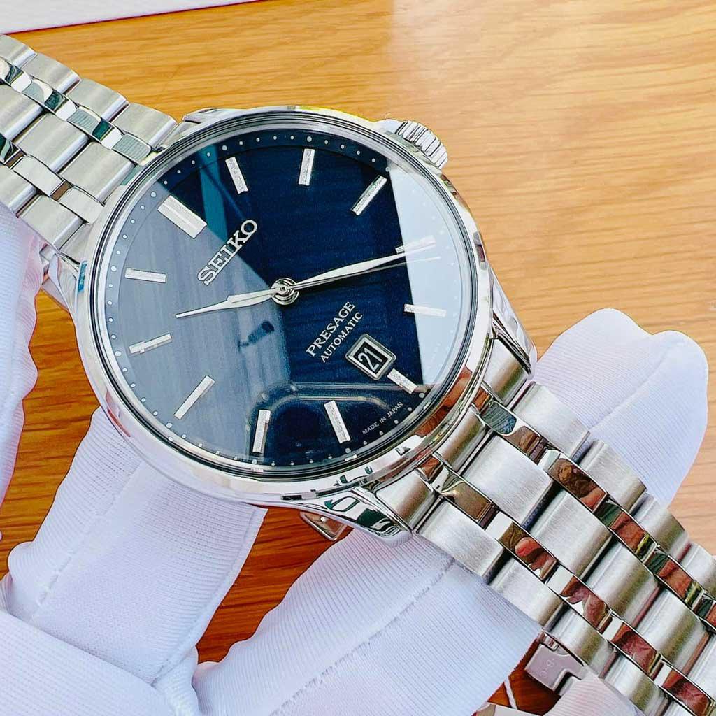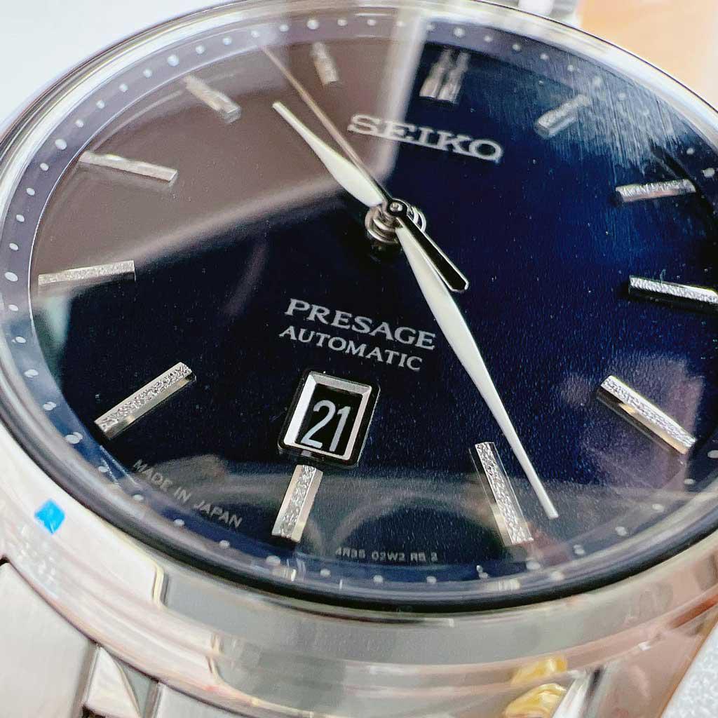 Thuộc dòng presage cao cấp của hãng Seiko, model SRPD41J1 đem đến cái chất của dòng: đơn giản, lịch lãm và thanh thoát. Kim trắng nổi bật trên nền dial xanh nhám cực sang.