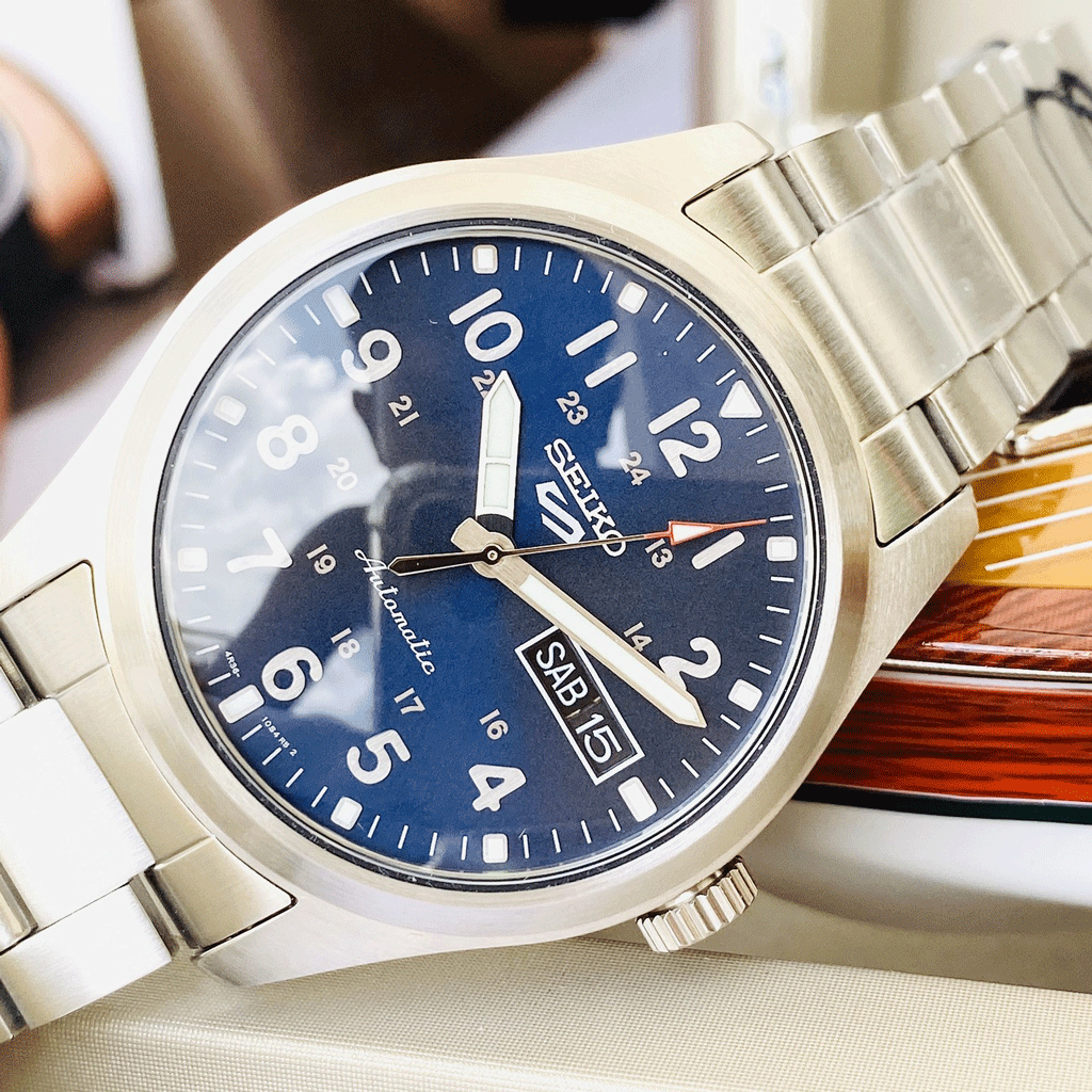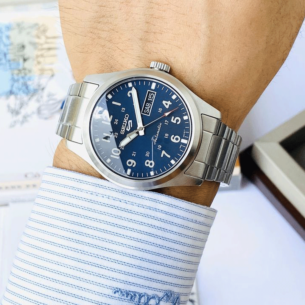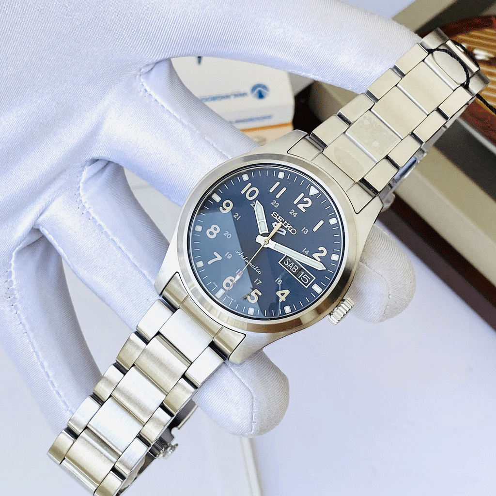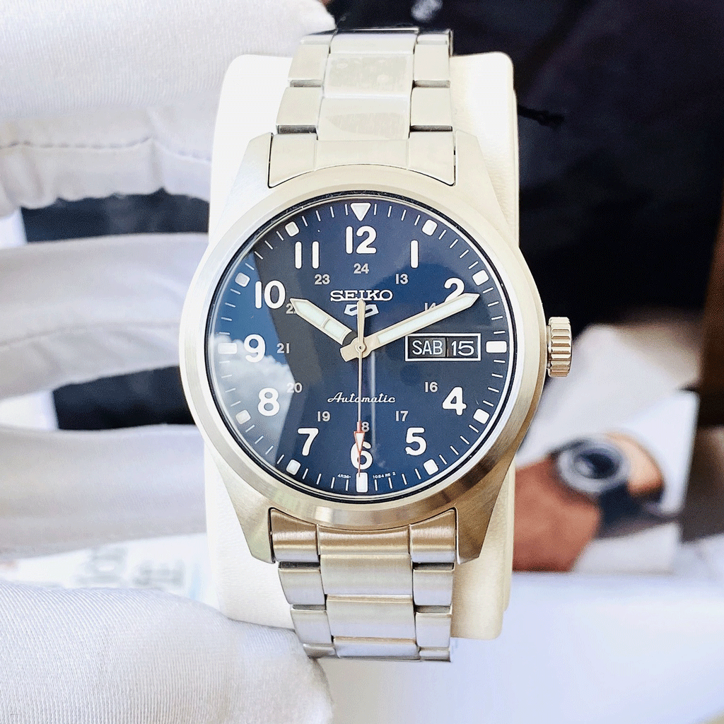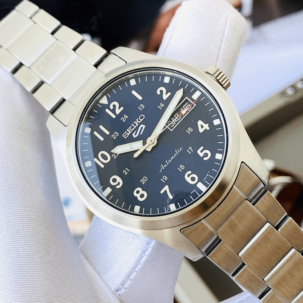 Mẫu đồng hồ quân đội Seiko 5 Sports Field SRPG29K1 nam tính của Seiko với bộ máy cơ tự động Caliber 4R36 chính xác của Nhật Bản, cung cấp những tính năng tiêu chuẩn với khả năng chống nước 100m, mặt kính Hardlex độc quyền của Seiko chống xước tốt. Đây là mẫu đồng hồ thích hợp cho những hoạt động thể thao ngoài trời và phù hợp với mọi loại trang phục