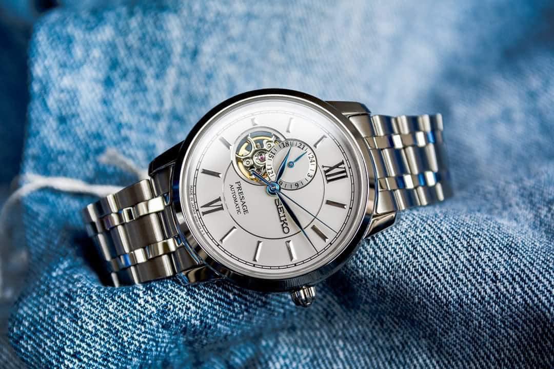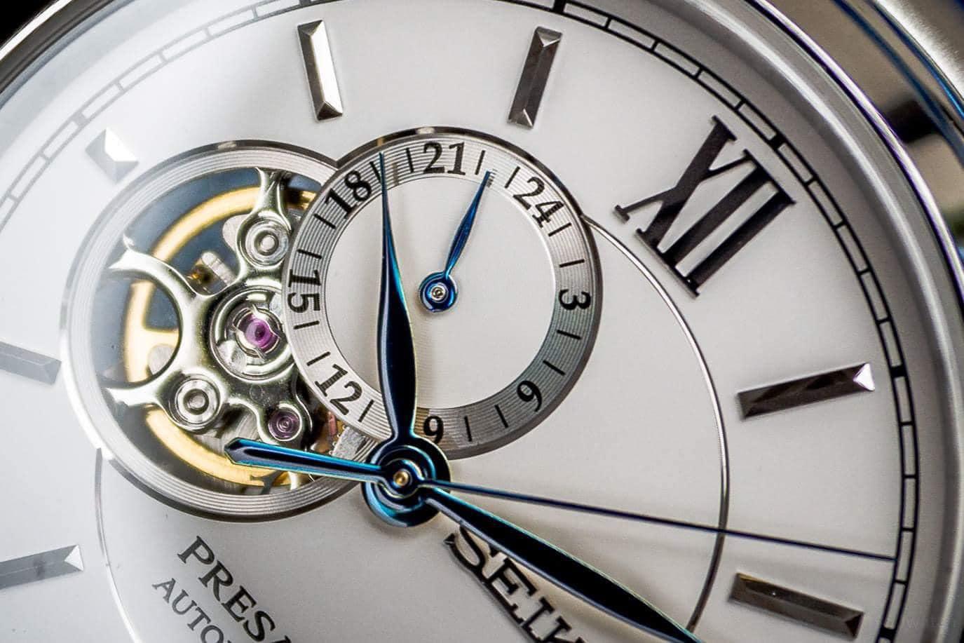 - Đây là mẫu đồng hồ cực đẹp với thiết kế hở tim kết hợp kim xanh độc đáo, là dòng model mới nhất của Seiko - Máy tự động 4R39 với 24 chân kính, cộng thêm chức năng lên cót tay và hacking stop tạo nên một chiếc đồng hồ hoàn hảo về chức năng. - Thời gian dự trữ năng lượng lên đến 41 giờ, với 21.600 nhịp / giờ tạo nên sự chuyển động liên tục đẹp mắt. - Đường kính: 39 mm , phù hợp tất cả các cổ tay . - Chống nước 100m, chịu được những mực nước cơ bản như rửa tay, đi mưa và tắm. - Kính sapphire nguyên khối. - Made in Japan : sản xuất tại nội địa Nhật Bản. - Kim xanh cực đẹp với thi