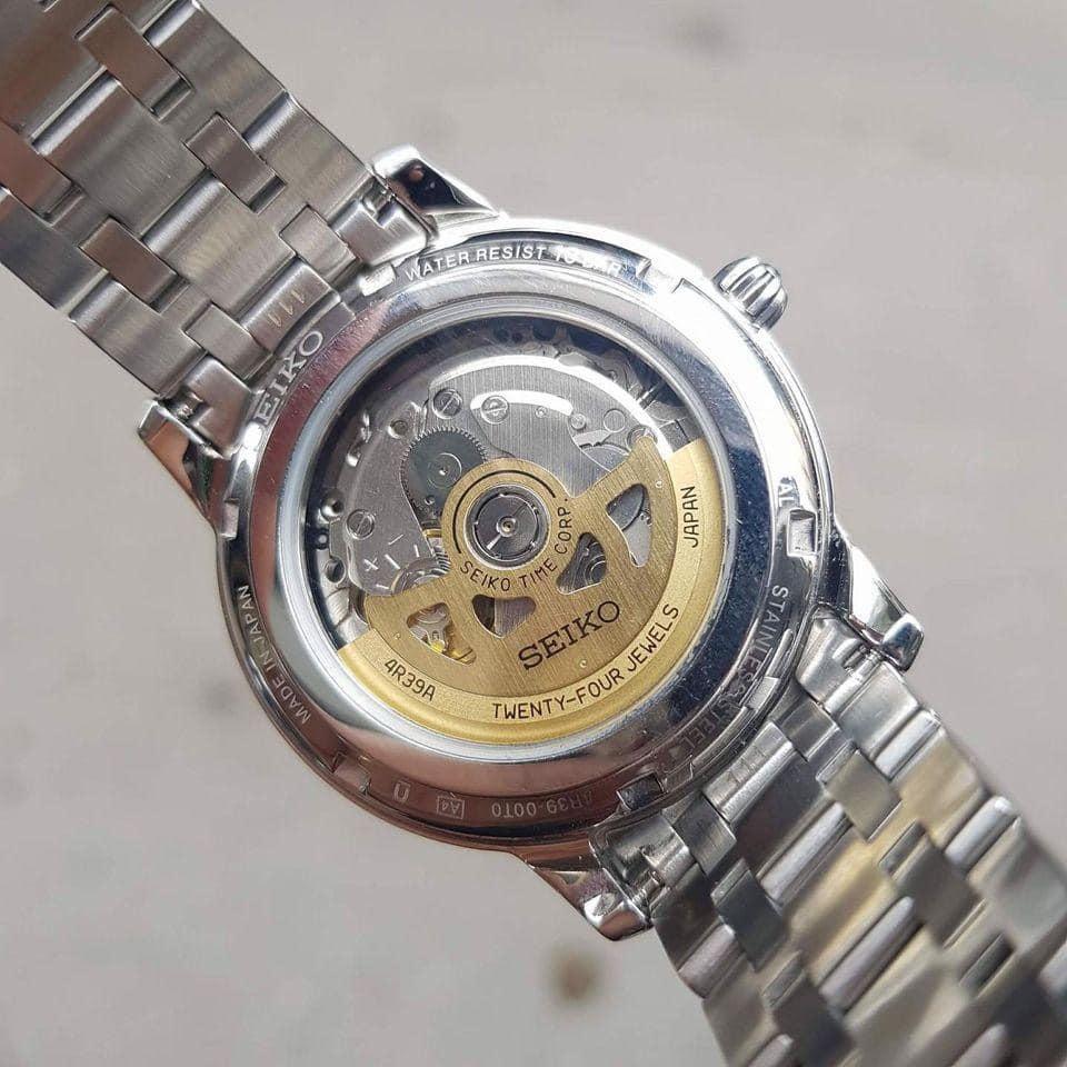 – SEIKO SSA367J1 – là mẫu đồng hồ cực đẹp với thiết kế hở tim độc đáo, là dòng model mới nhất của Seiko Thông tin chi tiết: – Máy tự động 4R39 với 24 chân kính, cộng thêm chức năng lên cót tay và hacking stop tạo nên một chiếc đồng hồ hoàn hảo về chức năng. – Thời gian dự trữ năng lượng lên đến 41 giờ, với 21.600 nhịp / giờ tạo nên sự chuyển động liên tục đẹp mắt. – Đường kính: 39 mm , phù hợp tất cả các cổ tay . – Chống nước 100m ( bơi lội thoải mái ) – Kính sapphire nguyên khối. – Made in Japan : sản xuất tại nội địa Nhật Bản.