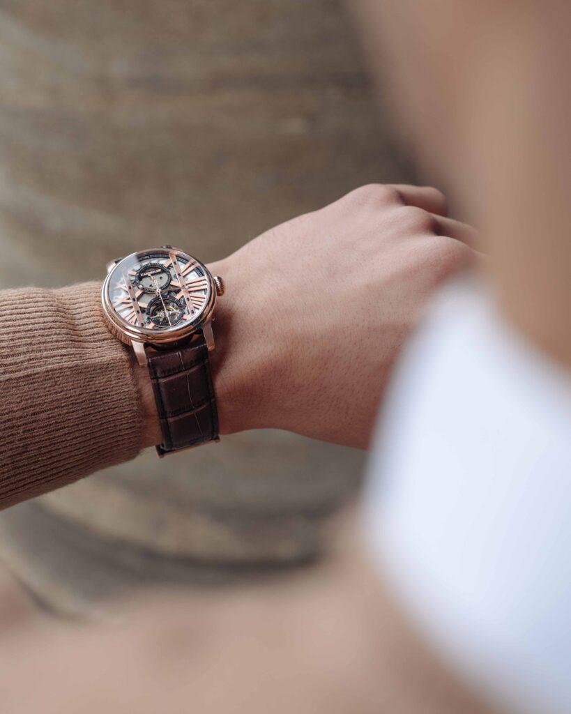 Với thiết kế cơ khí khác xa với những thiết kế truyền thống, những tuyệt tác cơ khí Skeleton độc đáo và khác biệt. Thiết kế bộ khung máy được nhìn thông suốt .Nhịp thở open heart góc 6h chiễm chệ đầy sức hút. Kim giờ phụ được đưa về góc 12h chạy mượt mà trên logo hãng EARNSHAW Đồng Hồ Nam Thomas Earnshaw ES-8095-03 Chính Hãng 1 Đồng Hồ Nam Thomas Earnshaw ES-8095-03 Chính Hãng 2