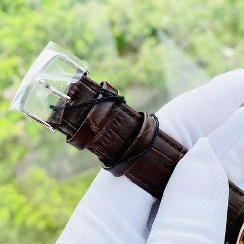 Có kiểu dáng cổ điển khi mặt số tròn kết hợp cùng dây đeo da màu nâu có vân lịch lãm, kim chỉ phản quang cùng vạch số màu đồng nổi bật trên nền số màu trắng sang trọng, còn có ô lịch ngày vị trí 6h, tạo nên phụ kiện thời trang. Mặt kính được làm bằng chất liệu kính sapphire. Bên trong khung vỏ là bộ máy quartz có độ chính xác cao. Dây đeo được làm bằng da mang lại phong cách thanh lịch