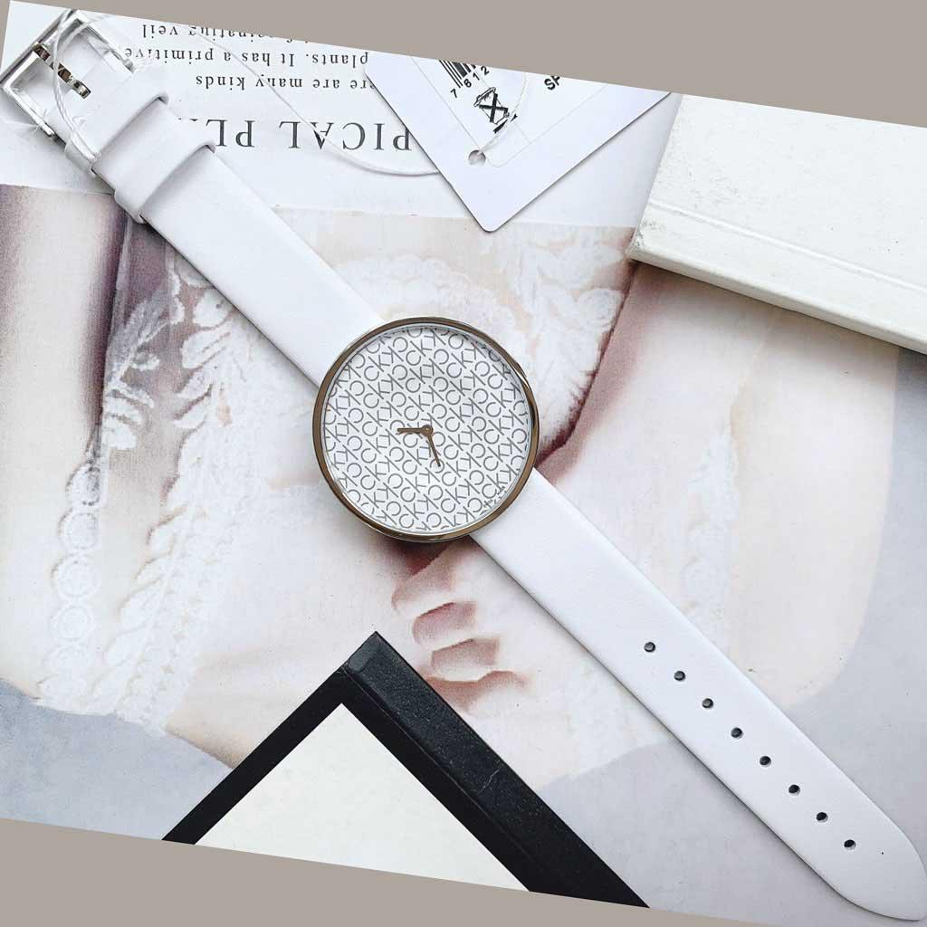 Vỏ thép không gỉ mạ trắng với dây đeo bằng da (da bê) màu trắng. Gờ bằng thép không gỉ mạ trắng cố định. Mặt số màu trắng (CK monogram) với kim trắng. Không có điểm đánh dấu. Loại quay số: Analog. Bộ máy thạch anh ETA cỡ 901.001. Tinh thể khoáng chống xước. Kéo / đẩy vương miện. Ốp lưng chắc chắn. Hình dạng hộp tròn. Kích thước vỏ: 38 mm. Độ dày vỏ: 9 mm. Tang kẹp. Chống nước ở 30 mét / 100 feet. Chức năng: giờ, phút. Dòng Mania. Phong cách đồng hồ thông thường. Nhãn đồng hồ: Swiss Made. Đồng hồ nữ mặt số Calvin Klein Quartz White CK Monogram KAG231LX