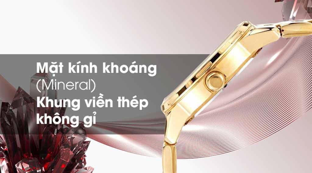 Bảo vệ các chi tiết máy bên trong an toàn trước những va chạm thường ngày - Bộ khung mẫu đồng hồ kim này sáng bóng, chịu lực tốt, chắc chắn, có khả năng chống ăn mòn và chống oxi hóa hiệu quả. - Mặt kính của chiếc đồng hồ Citizen nữ này trong suốt, độ cứng khá, hạn chế nứt vỡ, trầy xước khi có va chạm nhẹ.