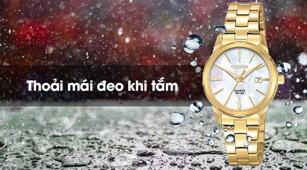Hệ số chống nước 5 ATM, mẫu đồng hồ Citizen này vẫn an toàn khi bạn đeo đi tắm và đi mưa, không mang khi tắm, bơi, lặn