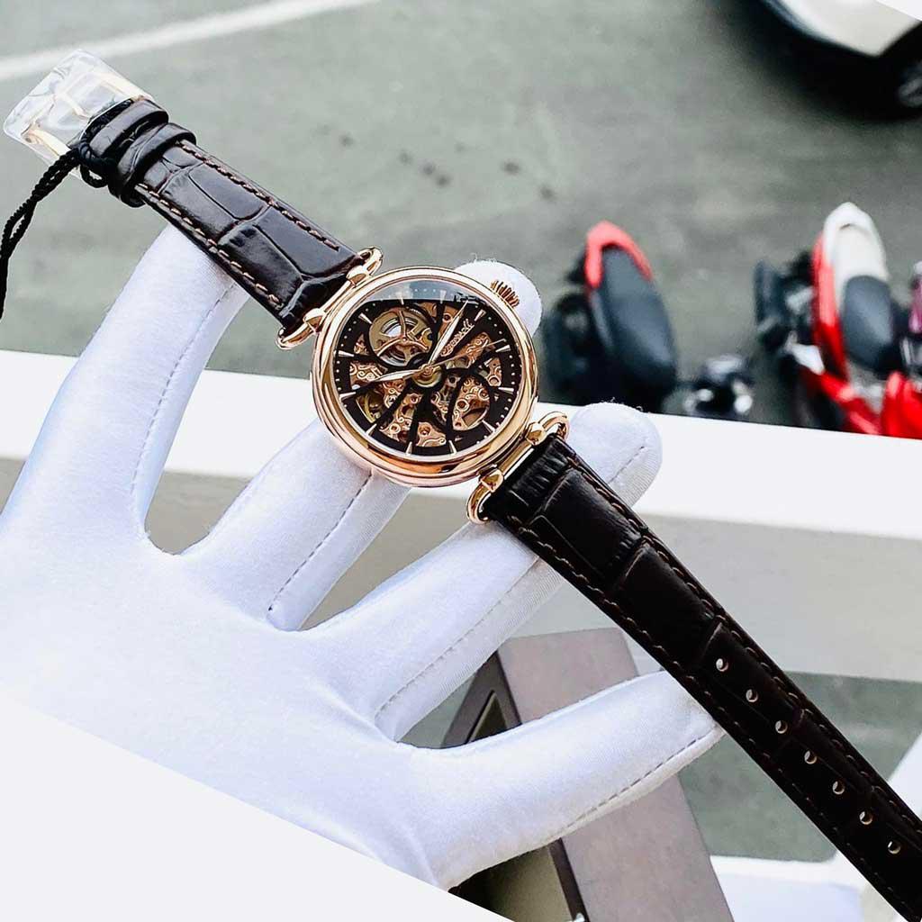 Máy automatic lộ cơ sexy Case 38mm đeo siu đẹp luôn (tay nữ mình đeo nhìn ko hề to chút nào)