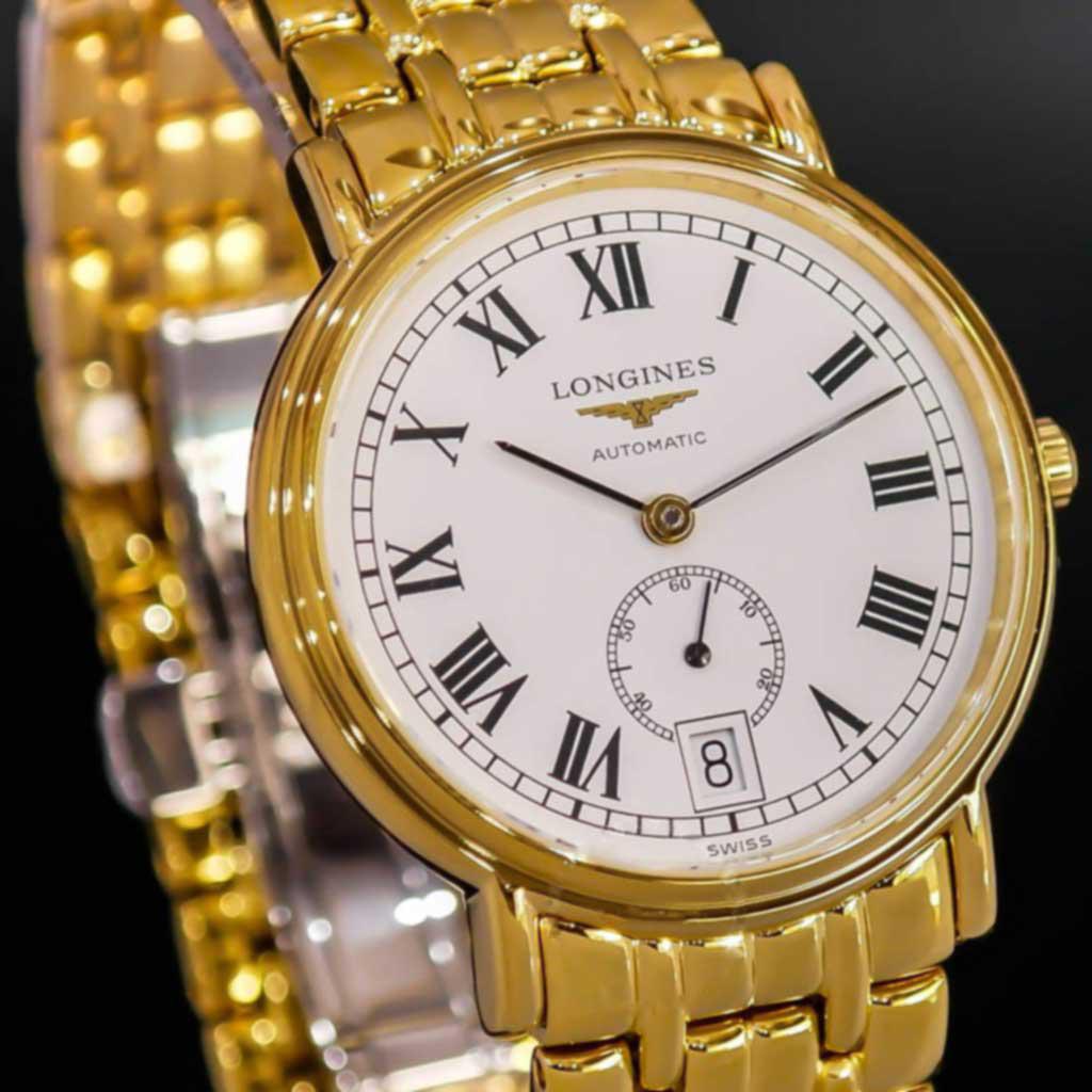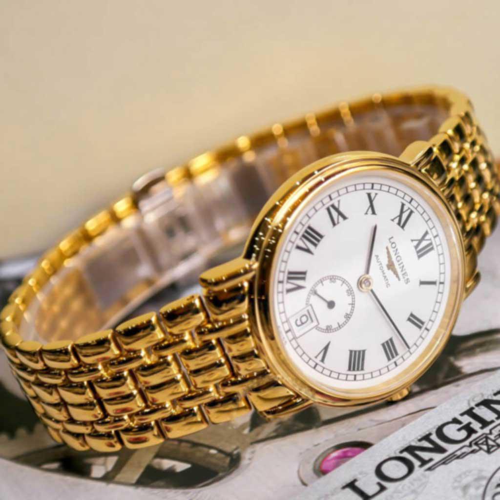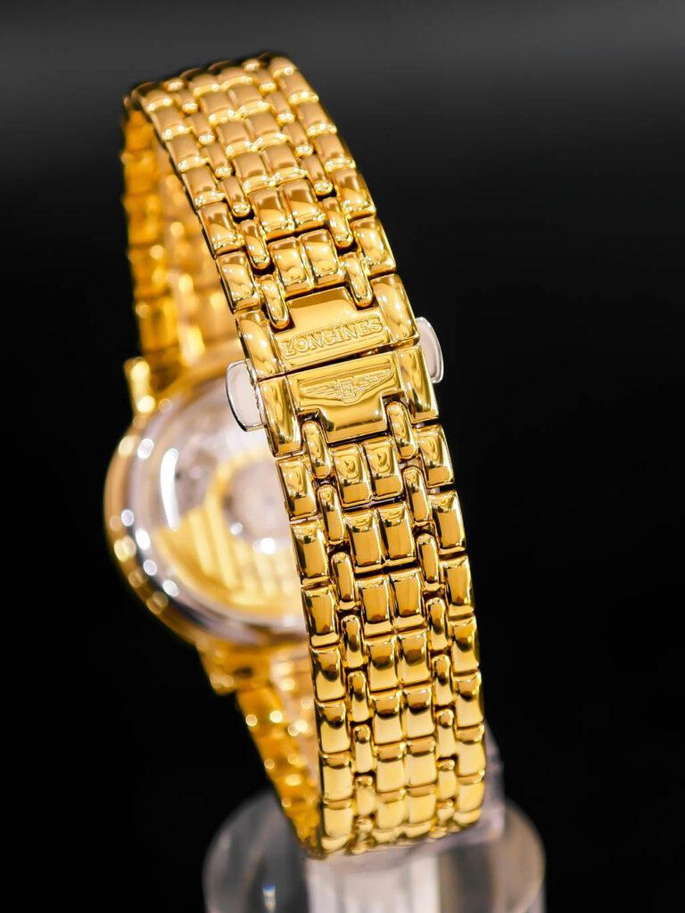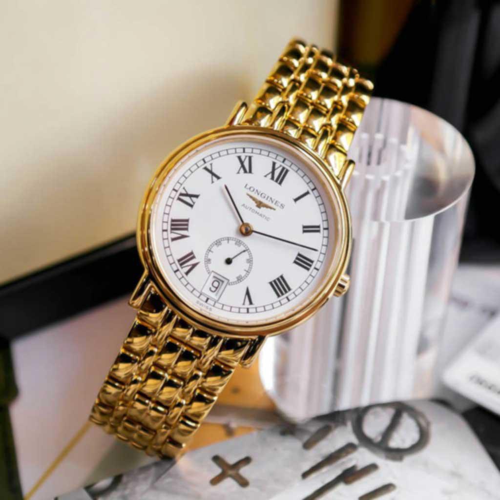 Nếu như bạn yêu thích những thiết kế đồng hồ sang trọng, thanh lịch, thì chắc chắn Longines Presence L48042118 là một sự lựa chọn hoàn hảo. Chiếc đồng hồ thiết kế với kích thước vừa vặn 34.5mm, bộ vỏ chế tác từ Thép mạ vàng kết hợp cùng với dây kim loại mạ vàng. Theo đánh giá của chúng tôi, dây thép mạ vàng của Longines là một trong những loại dây chắc chắn, ôm cổ tay nhất.
