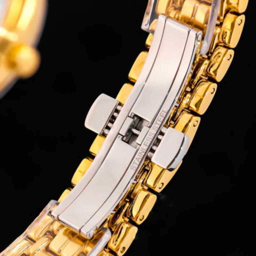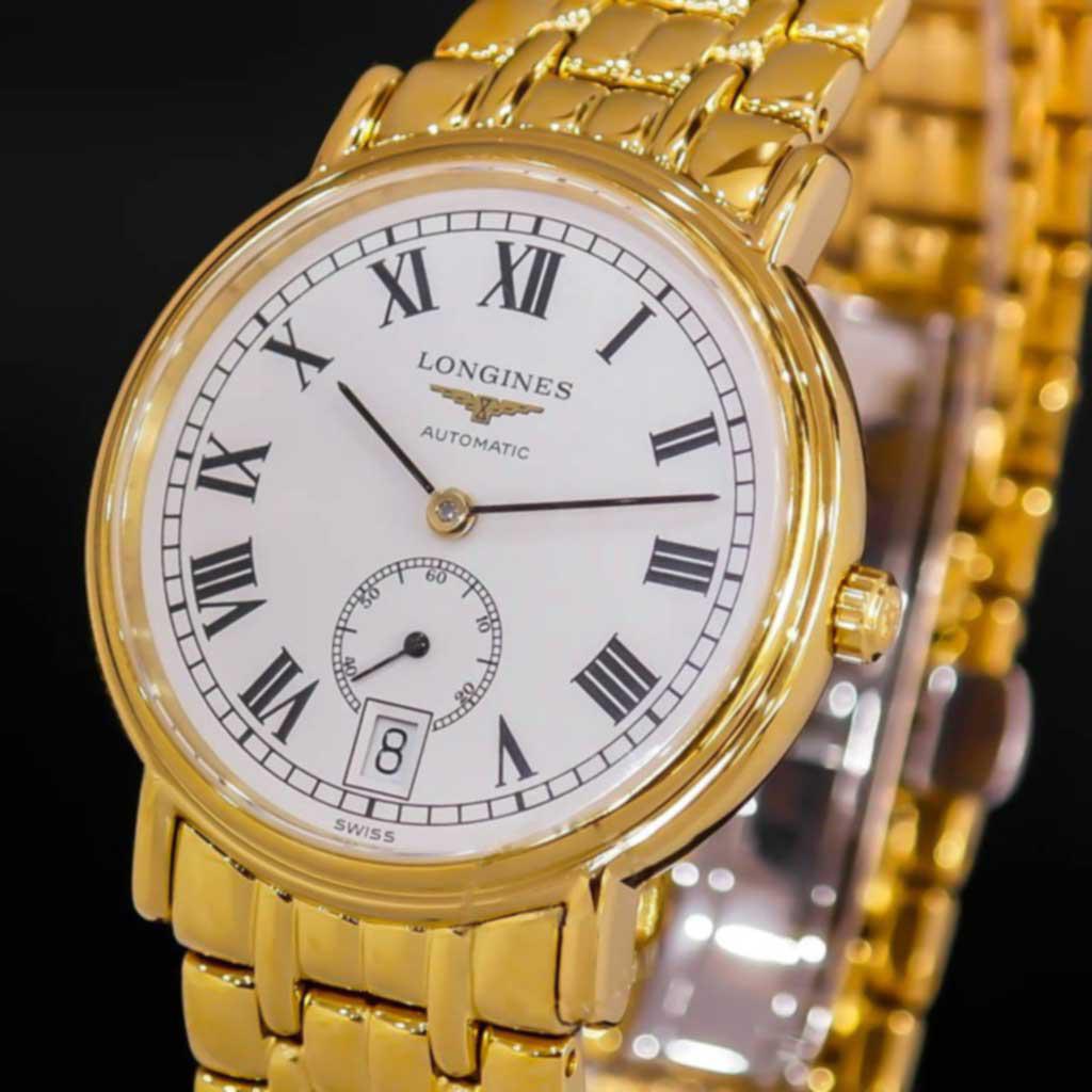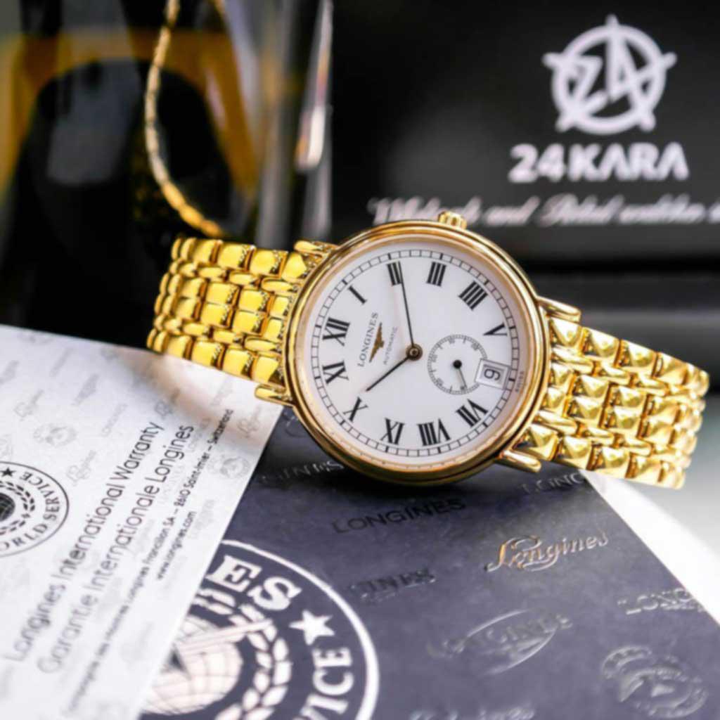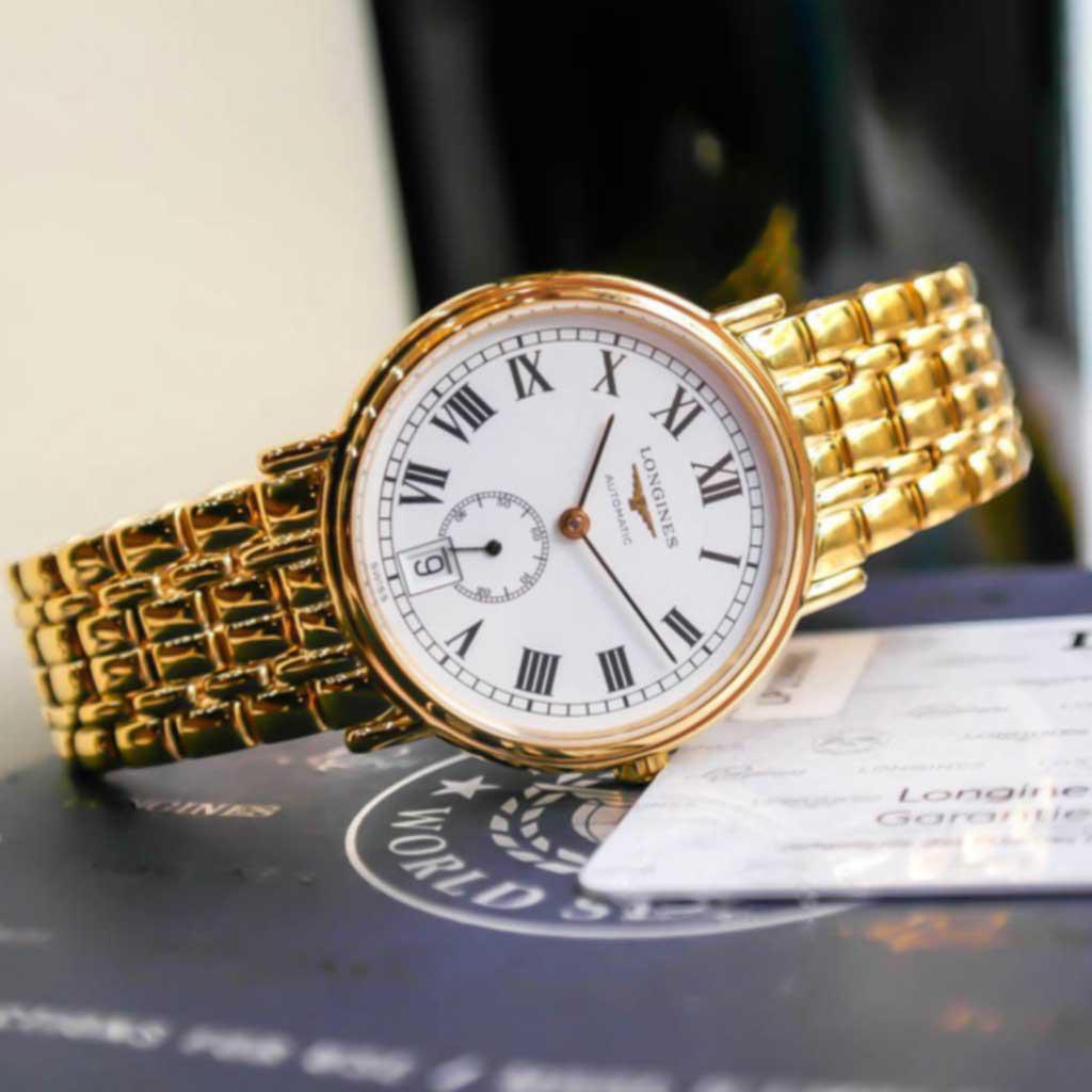 Nếu như bạn yêu thích những thiết kế đồng hồ sang trọng, thanh lịch, thì chắc chắn Longines Presence L48042118 là một sự lựa chọn hoàn hảo. Chiếc đồng hồ thiết kế với kích thước vừa vặn 34.5mm, bộ vỏ chế tác từ Thép mạ vàng kết hợp cùng với dây kim loại mạ vàng. Theo đánh giá của chúng tôi, dây thép mạ vàng của Longines là một trong những loại dây chắc chắn, ôm cổ tay nhất.