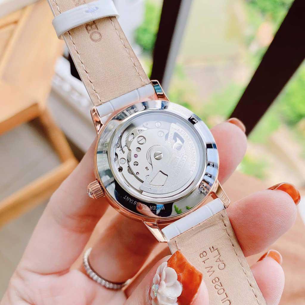 Bộ kim dạng lá tối giản được mạ vàng tạo cảm giác vừa thanh lịch vừa sang trọng. Đường kính 36,5mm kết hợp với phần vỏ mạ vàng hồng cùng dây da trắng thích hợp với những cô gái theo đuổi phong cách cá tính và trẻ trung. Mẫu đồng hồ này được Orient trang bị bộ máy cơ Cal.F6B22 mạnh mẽ với 21 chân kính. Ngoài ra, RA-AK0004A10B còn có kính sapphire chống xước, mặt đáy lộ giúp quan sát bộ máy bên trong cùng độ chịu nước 30m.