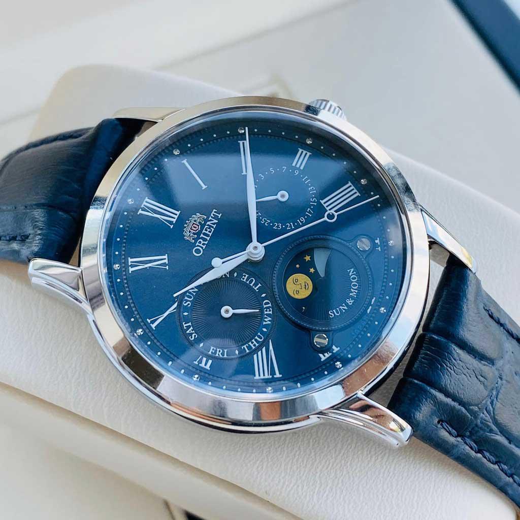 Thuộc dòng sản phẩm Orient , RA-KA0004L là một trong những mẫu đồng hồ nữ bán chạy nhất của thương hiệu đến từ xứ sở mặt trời mọc. Với ngoại hình đầy nữ tính và nổi bật, cỗ máy của Orient có khả năng quyến rũ trái tim của mọi cô gái. RA-KA0004L sở hữu mặt số xanh dương đồng bộ với dây da tạo nên một phối màu đầy trẻ trung và thanh lịch. Bộ kim dạng lá và kim Breguet kết hợp với cọc số La Mã màu trắng khiến cho chiếc đồng hồ thêm phần lịch lãm và trẻ trung. Ô cửa sổ Sun & Moon huyền thoại cùng 2 mặt số phụ chỉ lịch ngày và lịch thứ thích hợp với những cô gái hiện đại, cá tính. Mẫu đồng hồ này được Orient trang bị bộ máy điện tử Cal.KUE00 và kính sapphire chống xước. Ngoài ra, RA-KA0004L còn có vỏ từ thép không gỉ cùng độ chịu nước lên đến 50m.