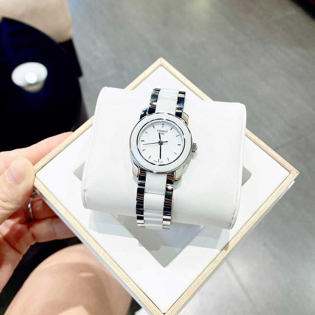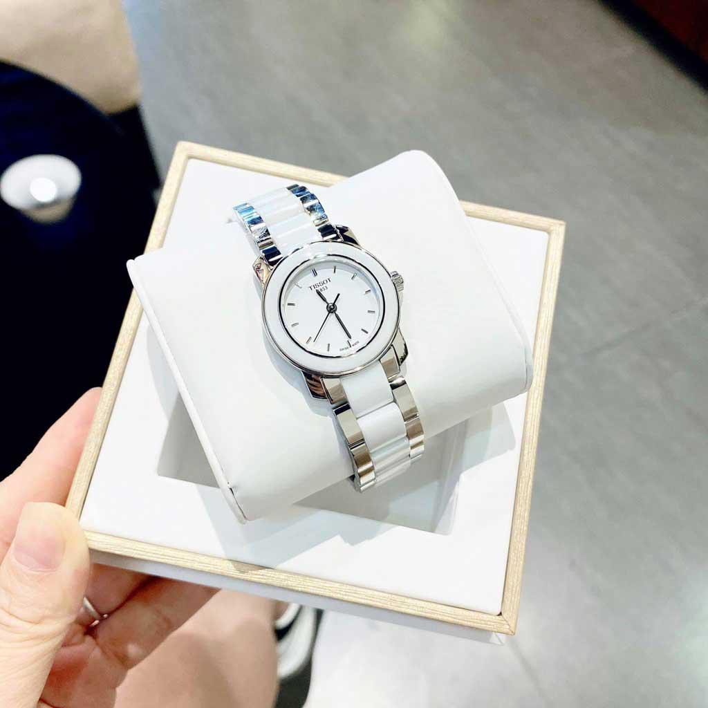 Đồng hồ Tissot T064.210.22.011.00 có thiết kế đặc biệt với dây đeo được kim loại bao quanh chất liệu gốm trắng tinh xảo, mặt số nền trắng với kim chỉ và gạch số được mạ bạc mang đậm nét sang trọng, quý phái. Tissot T-Trend White Ceramic Ladies Watch T0642102201100 có mặt số màu trắng chủ đạo đi liền với sự tinh khiết, thanh lịch và hoàn thiện. Màu trắng còn có ý nghĩa đơn giản và an toàn. Khung vỏ được làm bằng chất liệu thép không gỉ 316L là loại thép có hàm lượng carbon cực thấp giảm thiểu kết tủa cacbua khó chịu do hàn, hàm lượng niken và molypden cao hơn cho phép nó thể hiện tính chất chống ăn mòn tổng thể tốt hơn trong môi trường nước biển hoặc chất lỏng có tính axit như mồ hôi. Bên cạnh đó, thép 316L cũng chống lại các đặc tính từ tính. Dây đeo được làm bằng thép không gỉ 316L mang lại nét chắc chắn cho người sử dụng. Tissot T-Trend White Ceramic Ladies Watch T0642102201100 được trang bị bộ máy quartz được vận hành bởi một bảng mạch điện tử và được cung cấp năng lượng từ một viên ắc quy nhỏ hay còn được gọi là viên pin. Hầu hết các bộ máy quartz, có kim giây di chuyển theo từng nhịp với tần số 32.768 dao động mỗi giây đủ cao để con người không thể cảm nhận được bằng mắt thường. đồng hồ quartz được đánh giá rất cao về độ chính xác vì chúng chạy liên tục cho đến khi hết pin và không cần phải được cài đặt lại thời gian thường xuyên như đồng hồ cơ. Ngày nay, đồng hồ quartz thường sử dụng pin với tuổi thọ từ 2 đến 5 năm.