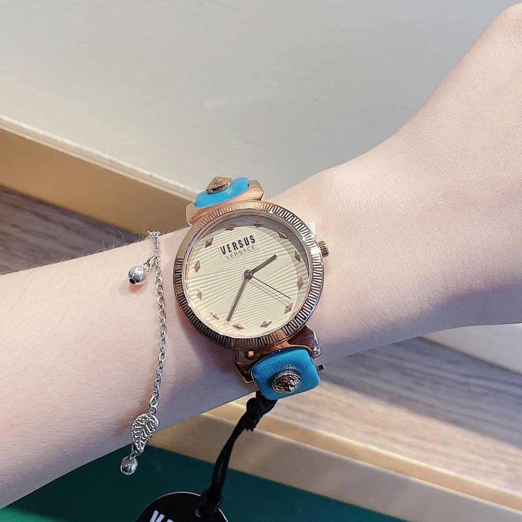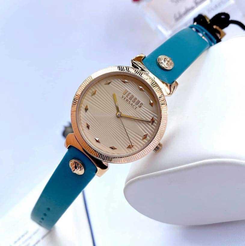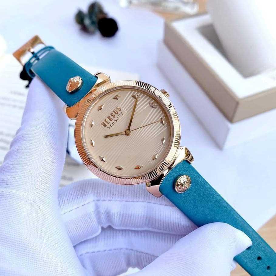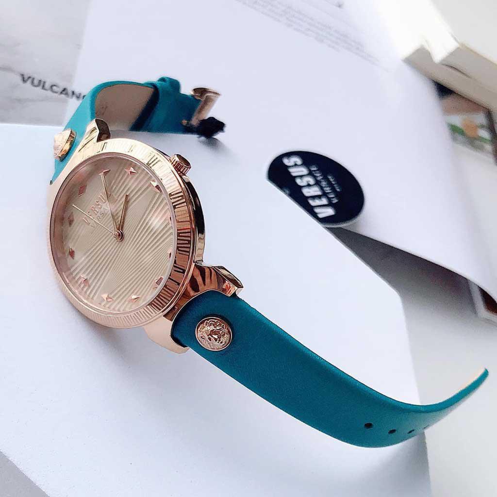 Versus Versace Marion VSPEO0319 là chiếc đồng hồ tuyệt vời dành cho phụ nữ chắc chắn sẽ được đánh giá cao bởi mọi người yêu thích những món đồ hoàn hảo. Đồng hồ có bộ máy thạch anh đáng tin cậy và chạy bằng pin. Vỏ đồng hồ được làm bằng thép không gỉ nguyên khối, được phủ một lớp vàng hồng, dây đeo màu xanh lá làm bằng da rất bền và vừa vặn với cổ tay. Mặt số vàng hồng có tinh thể khoáng, có khả năng chống va đập và trầy xước trong quá trình sử dụng hàng ngày. Mức độ chống nước 3ATM có nghĩa là đồng hồ được bảo vệ khỏi những tia nước nhỏ. Mô hình được đóng gói trong một hộp trang nhã, phong cách và nguyên bản và đi kèm với bảo hành của nhà sản xuất