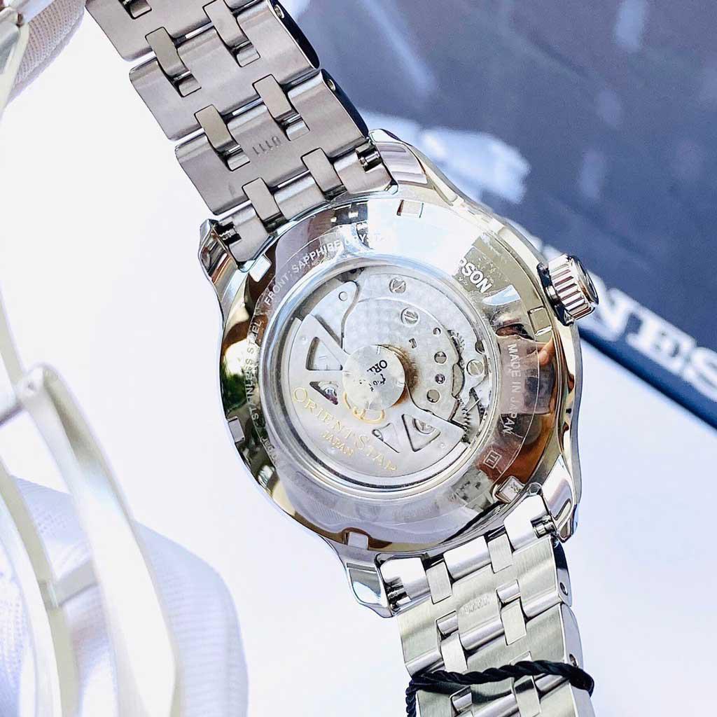 Model mới nhất trong BST O.rient Star OpenHeart với thiết kế trẻ trung mới lạ và bắt mắt. Ô hở van tim được tạo hình 1 phần của hình trái tim rất độc đáo. Vị trí kim xăng góc 12h cũng được "khoét lỗ" để lộ bánh răng cơ học, đối xứng là kim rốn góc 6h. Bộ kim xanh nổi bật trên nền Dial trắng trẻ trung lịch lãm.