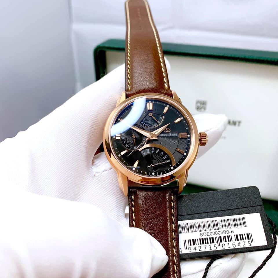 Đồng hồ Orient Star SDE00003B0 thuộc dòng đồng hồ cơ dành cho nam được sản xuất và nhập khẩu nguyên chiếc từ Nhật Bản, công nghệ mạ vàng hồng nổi bật nhất hiện nay.