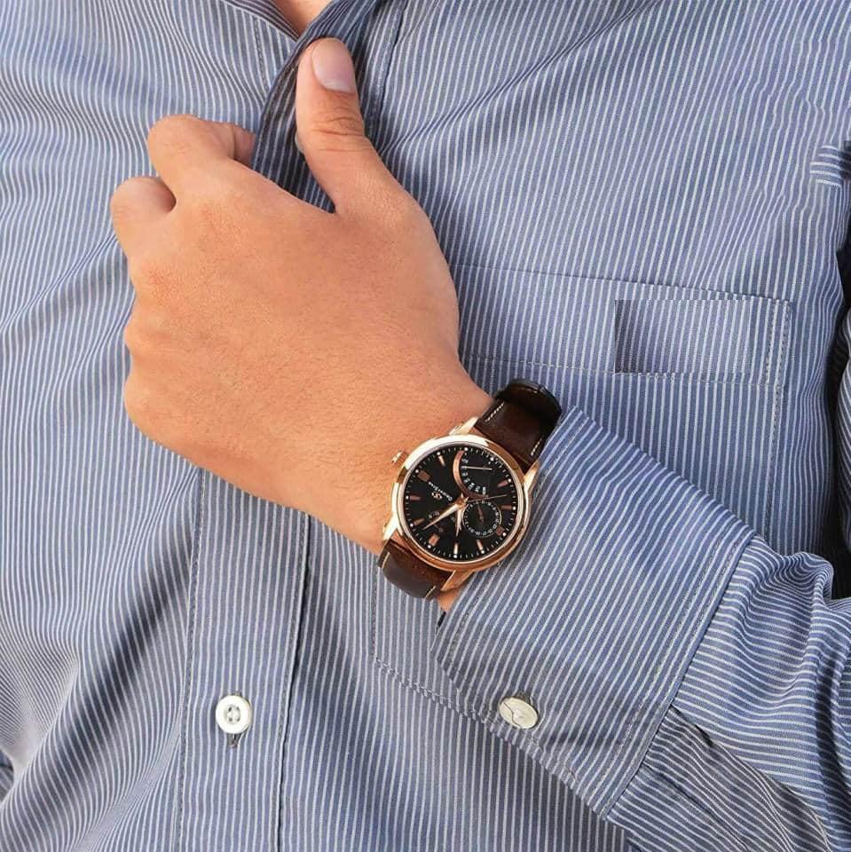 Khác hẳn với những dòng sản phẩm khác Oriient đã tạo nên sự khác biệt với phần mặt nền đen cùng các ô chức năng sắp xếp độc đáo nổi bật tạo điểm nhấn thú vị cho người đeo.