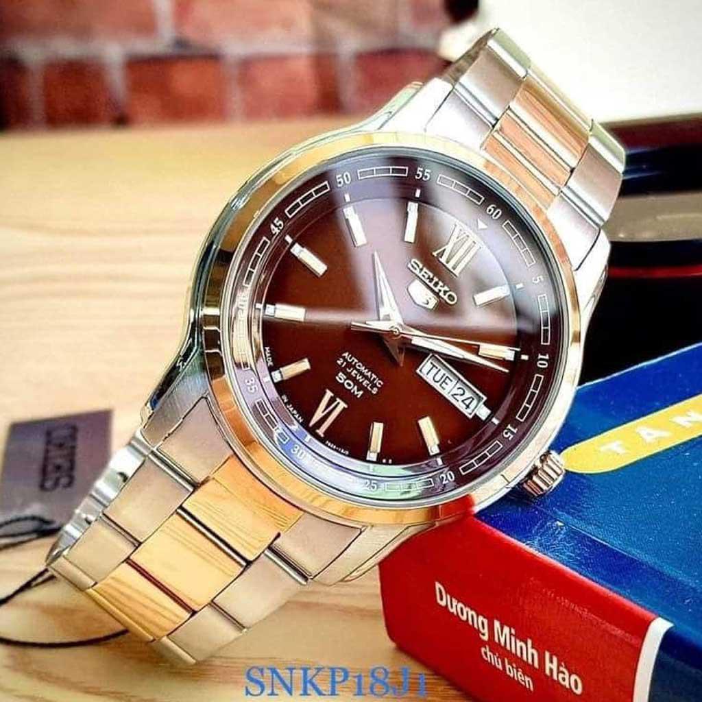 Đồng hồ Seiko SNKP18J1 là chiếc đồng hồ Seiko nam nổi tiếng của Nhật Bản sở hữu thiết kế đầy nam tính, lịch lãm. Mặt số to bản với tông màu nâu nổi bật, dây đồng hồ demi được đan xen hoàn hảo giữa 2 màu vàng hồng và bạc tạo nên kiệt tác trong thế giới đồng hồ.