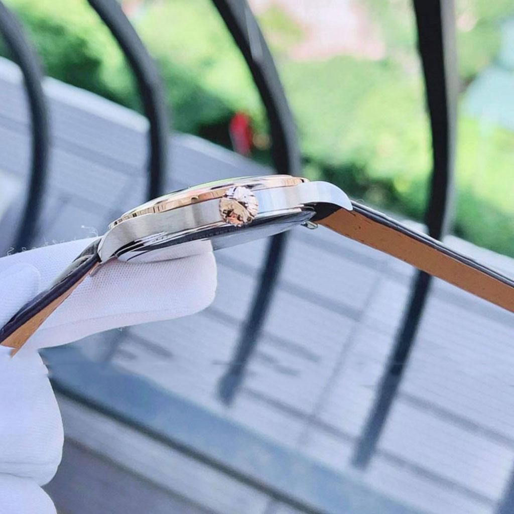 Longines đến từ những nhà sản xuất đồng hồ thần túy nhất, và Longines Record 38.5mm L28205762 cũng không khác gì. Mẫu đồng hồ đặc biệt này là sự kết hợp của thép không gỉ, vàng hồng 18 carat và dây da bóng tối. Khí chất chung của chiếc đồng hồ này là mộc mạc nhưng hiện đại. Ý tưởng là kết hợp những điều tốt đẹp của cả hai thời điểm, thời điểm mà đồng hồ thịnh hành và thời điểm mà tình yêu đeo đồng hồ thanh lịch được thay thế bằng việc mang theo một chiếc iPhone trong túi của một người. Vì chiếc đồng hồ này có vẻ ngoài phù hợp với cả hai mặt của thế kỷ, mẫu đồng hồ này không chỉ sở hữu thiết kế đơn giản nhưng hiện đại của các mốc giờ mà còn có một cửa sổ nhỏ ở vị trí 3 o 'để giúp theo dõi ngày trong tháng.