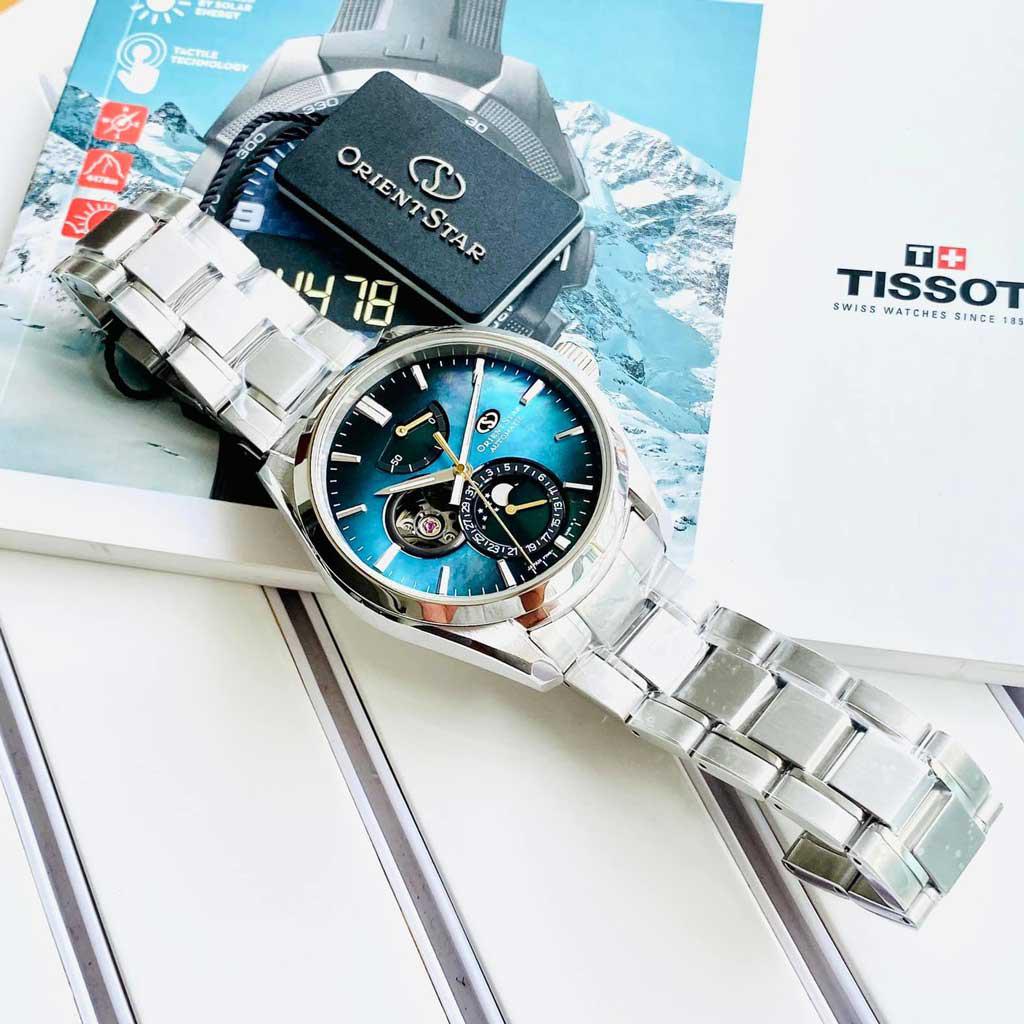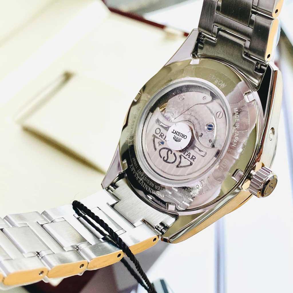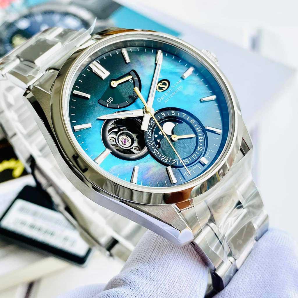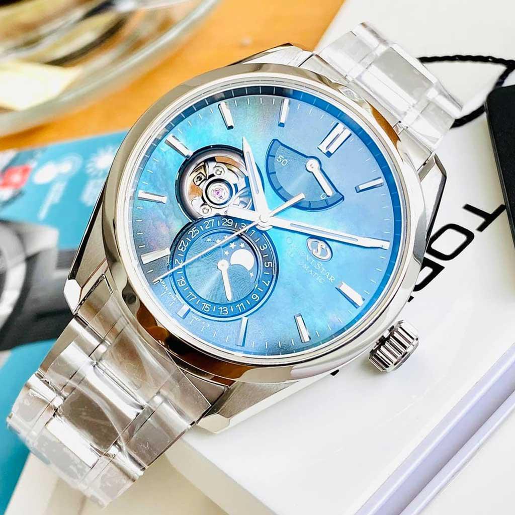Lại một siêu phẩm moon phase đến từ nhà Orient Star , Orient Star RE-AY0006A00B có đường kính 41 mm và độ dày 13.1 mm. Mặt kính được làm bằng chất liệu kính sapphire.